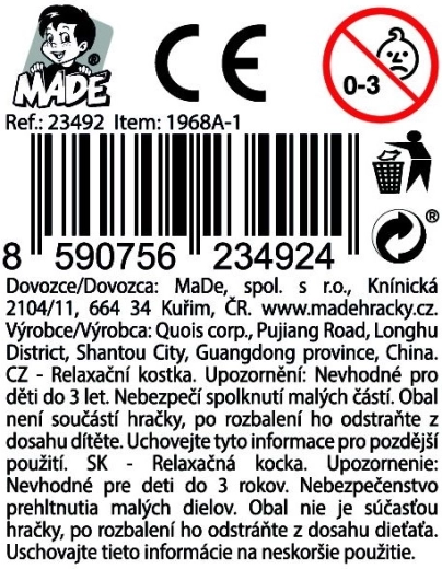 Eliberează tensiunea oricând și oriunde cu această cubică de relaxare compactă de 5 cm. Este ușoară, ușor de transportat și realizată din material de calitate pentru o prindere plăcută. Oferă o modalitate simplă de a reduce stresul, de a te concentra și de a-ți oferi un moment de liniște – fără baterii și fără griji. Potrivită pentru copii de la 3 ani și adulți.