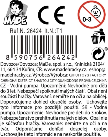 Această pompă de apă este un companion grozav pentru zilele călduroase la piscină, în grădină sau la apă. Datorită utilizării simple, se descurcă cu ea și cei mai mici, de la 3 ani. Culorile vii și formele diferite stimulează curiozitatea și spiritul de competiție jucăuș.