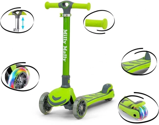 Căutați o trotinetă distractivă și sigură pentru copii activi? Milly Mally Boogie este o alegere excelentă pentru plimbările zilnice și joaca din jurul casei. Datorită structurii ușoare din aluminiu și plasticului ranforsat de calitate, trotineta este solidă, durabilă și ușor de controlat. Trei roți asigură stabilitate excelentă, virarea se face natural prin înclinarea corpului, iar aripa spate servește drept frână de picior.