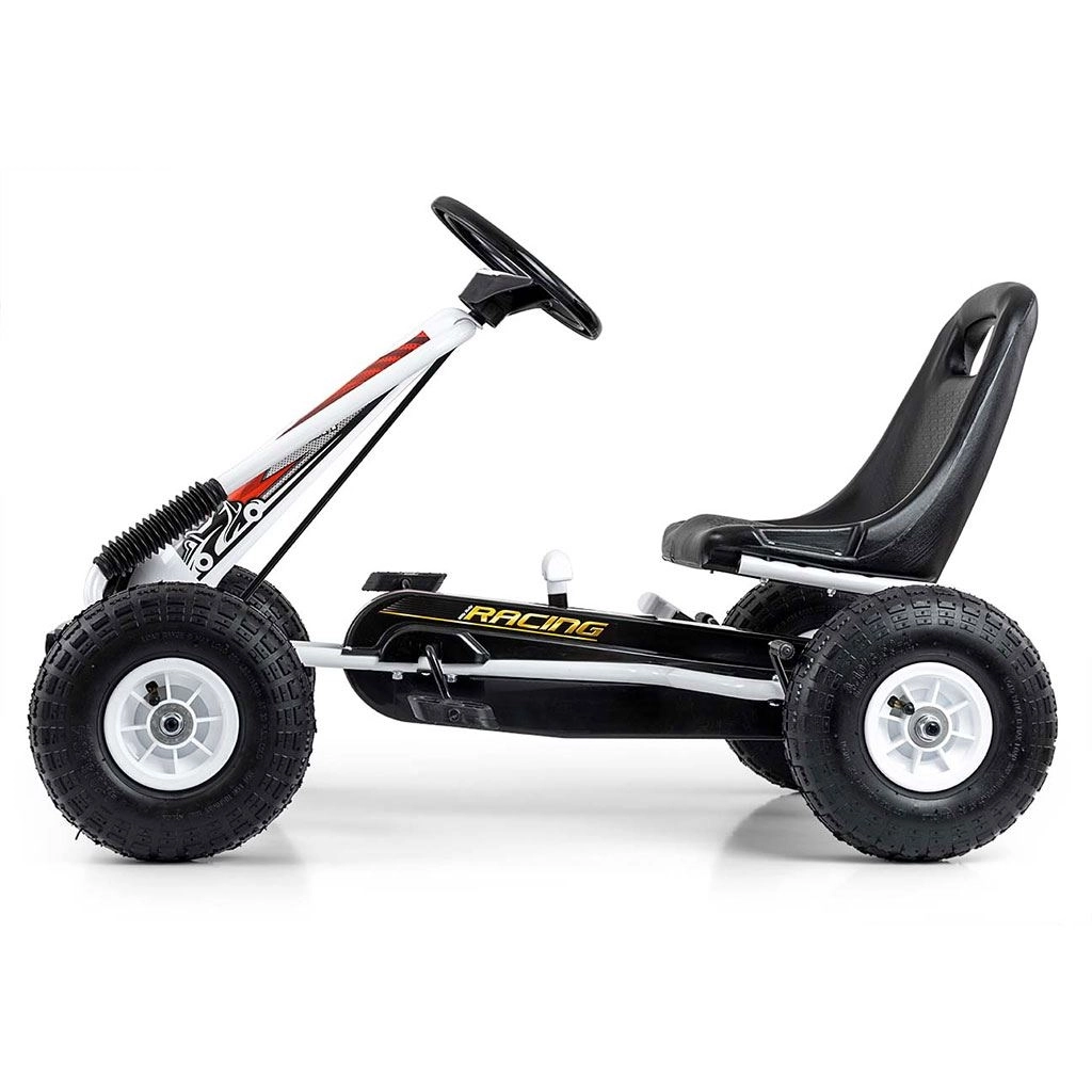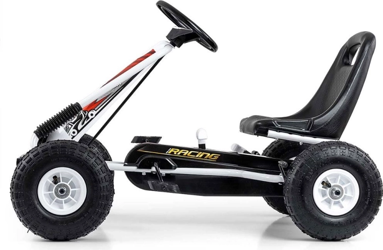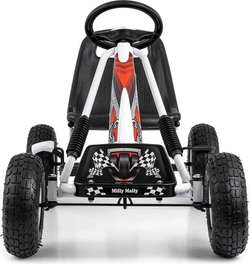 Kartul MILLY MALLY Thor este o alegere excelentă pentru micii piloți cu vârsta de 3–8 ani. Structura metalică ușoară, dar solidă, cu protecții din plastic, oferă un aspect sport și durabilitate. Datorită roților pneumatice mari cu profil pronunțat, deplasarea este stabilă și confortabilă pe asfalt, pavaj și drumuri întărite.