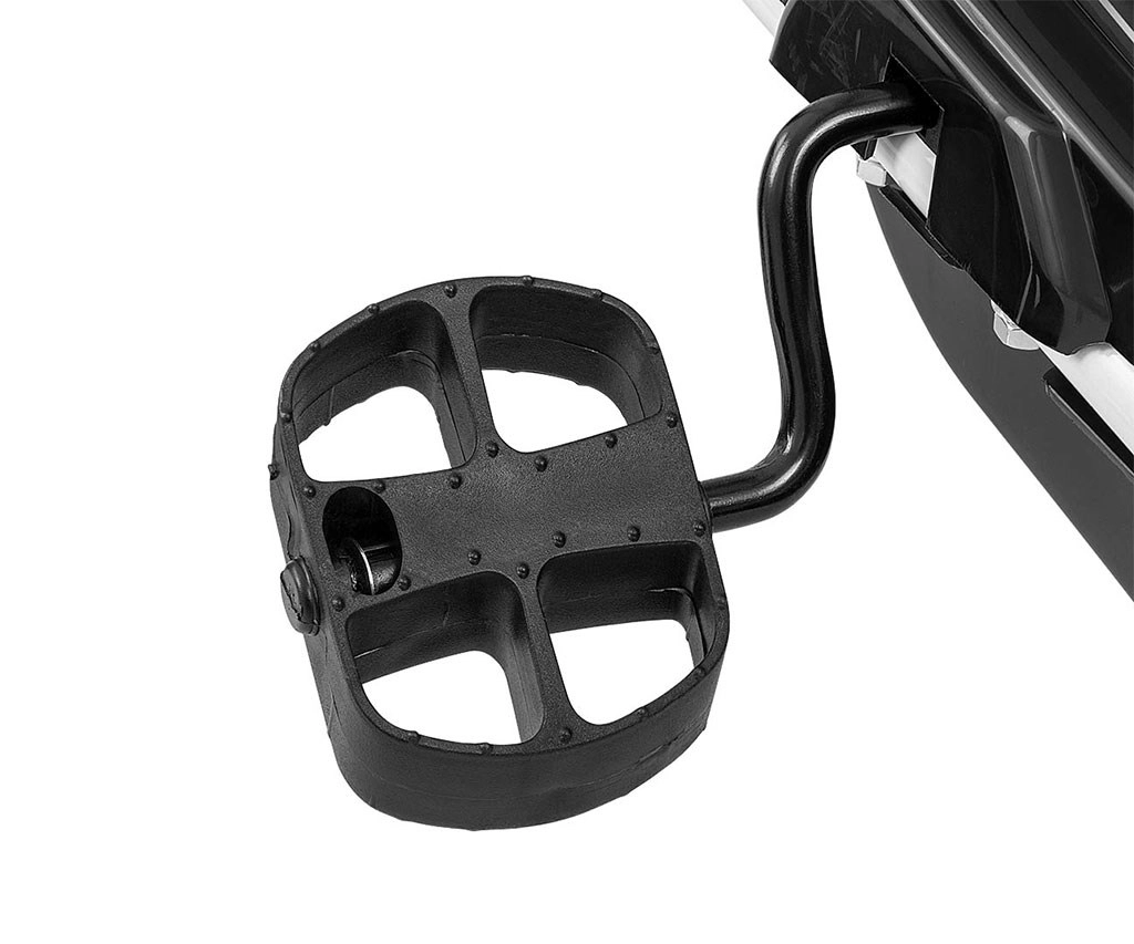 Roțile pneumatice mari, cu profil pronunțat și rulmenți, atenuează denivelările și oferă tracțiune și stabilitate excelente pe diferite suprafețe.