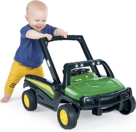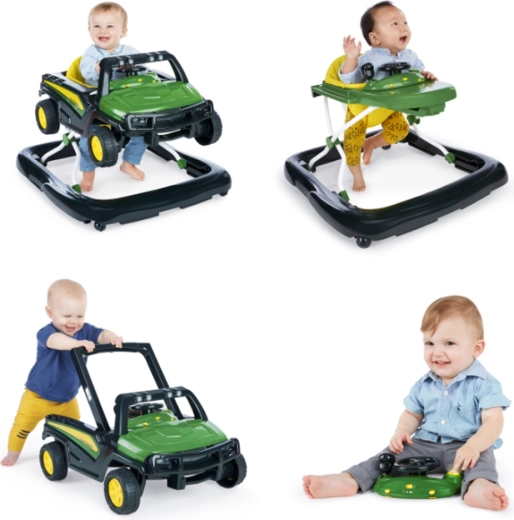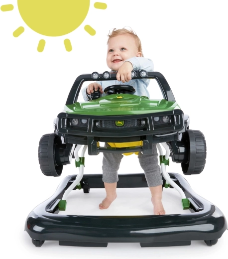 Mergătorul 4în1 John Deere Gator de la Bright Starts crește odată cu copilul: de la ședere cu sprijin, prin mers clasic, până la modul push-along împins din spate și panou de joacă independent pentru joaca pe podea. Aspectul realist de vehicul utilitar, volanul, maneta de viteze, luminile și sunetele JOHN DEERE Gator stimulează imaginația și dezvoltă motricitatea grosieră și fină.
