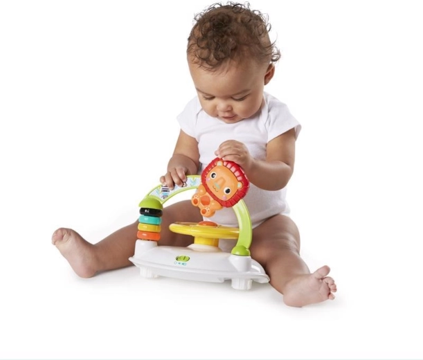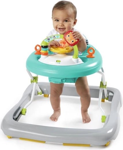 Premergătorul BRIGHT STARTS Zig Zag Zebra este partenerul ideal pentru perioada de dinaintea primilor pași. Datorită tematicii safari pline de voie bună, volanului cu lumini și sunete și altor activități, bebelușul își dezvoltă motricitatea fină și grosieră în timp ce se deplasează în siguranță prin încăpere. Scaunul cu spătar înalt oferă sprijinul și confortul necesare chiar și în timpul sesiunilor mai lungi de joacă.
