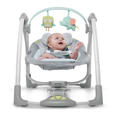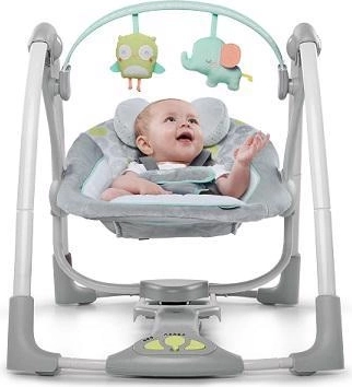 Leagănul Ingenuity Hoots & Hugs este alegerea ideală pentru liniștirea și distrarea bebelușului de la naștere până la 9 kg. Combină pernuțe confortabile, prindere sigură și mișcare liniștitoare cu muzică și sunete din natură. Datorită plierii compacte, se transportă și se depozitează cu ușurință, fiind excelent atât pentru apartament, cât și pentru călătorii.