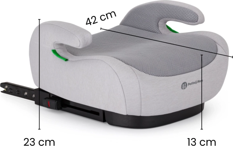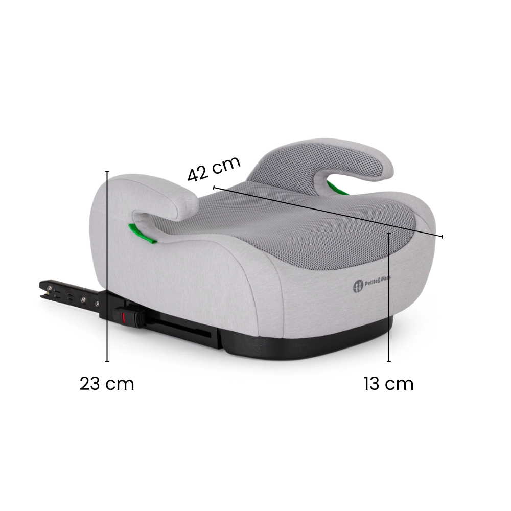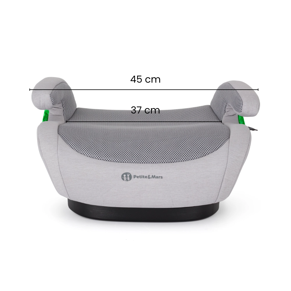 Înălțătorul Optimus Pro i-Size Air de la PETITE&MARS ridică copilul la înălțimea corectă pentru poziționarea centurii de siguranță, asigurând o fixare corectă și confortabilă. Conectoarele ISOFIX din oțel inoxidabil ancorează ferm scaunul în vehicul, iar clema de ghidare ajută la setarea centurii astfel încât să nu treacă pe la gât și nici prea jos sub umăr.