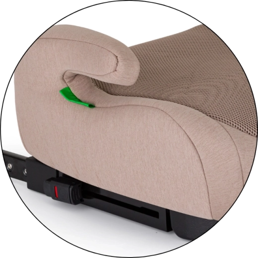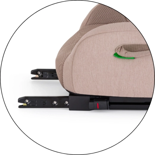 Conectoarele ISOFIX metalice asigură ancorarea fermă a înălțătorului în vehicul, reduc mișcarea nedorită și ușurează instalarea zilnică.