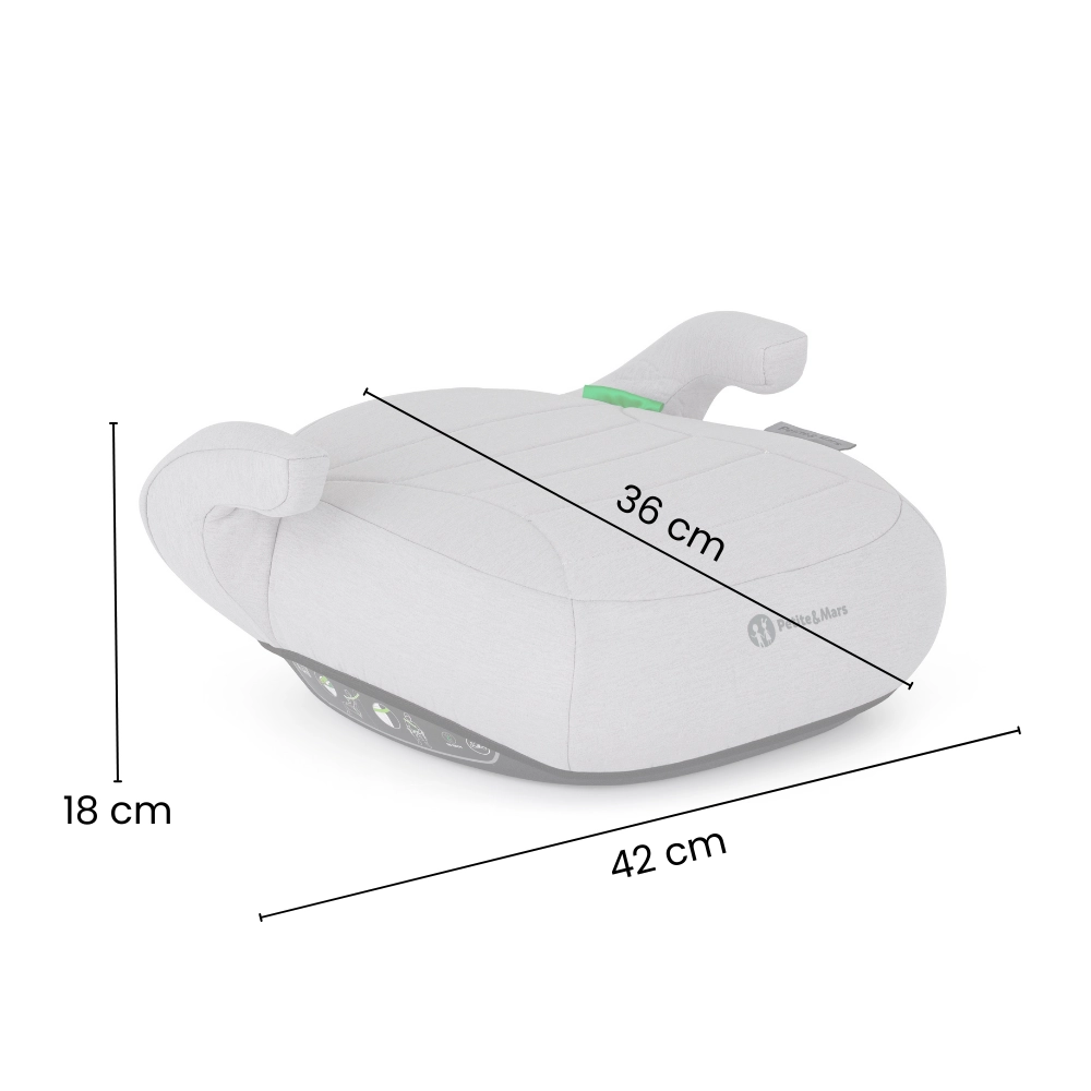 Înălțătorul Petite&Mars Zuno este alegerea ideală pentru copiii mai mari care nu mai au nevoie de spătar, dar necesită în continuare ghidarea corectă a centurii de siguranță. Montarea în sensul de mers și utilizarea centurii auto în 3 puncte asigură așezare sigură, în timp ce husa moale și forma atent gândită sporesc confortul la drum.
