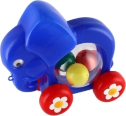 Drăgălașul elefant de tras din plastic îi va încânta pe cei mai mici, de la 12 luni. În timpul mersului, în burtica transparentă se rostogolesc vesel bile colorate, care scot sunete și invită la joacă. Dezvoltă motricitatea fină și grosieră, percepția senzorială și coordonarea mișcărilor. Șnurul nu este inclus.
