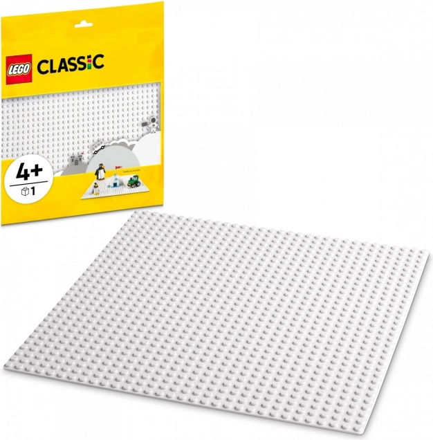 Placa de bază LEGO Classic permite joacă liberă plină de creativitate și imaginație. Această placă mare, albă, cu dimensiunile de 25 cm × 25 cm și cu grilă de 32 × 32 pini este baza perfectă pentru construirea de peisaje, jucării și alte construcții pe care copiii le pot inventa. Cu ajutorul ei pot crea de la lacuri înghețate până la vârfuri montane însorite.