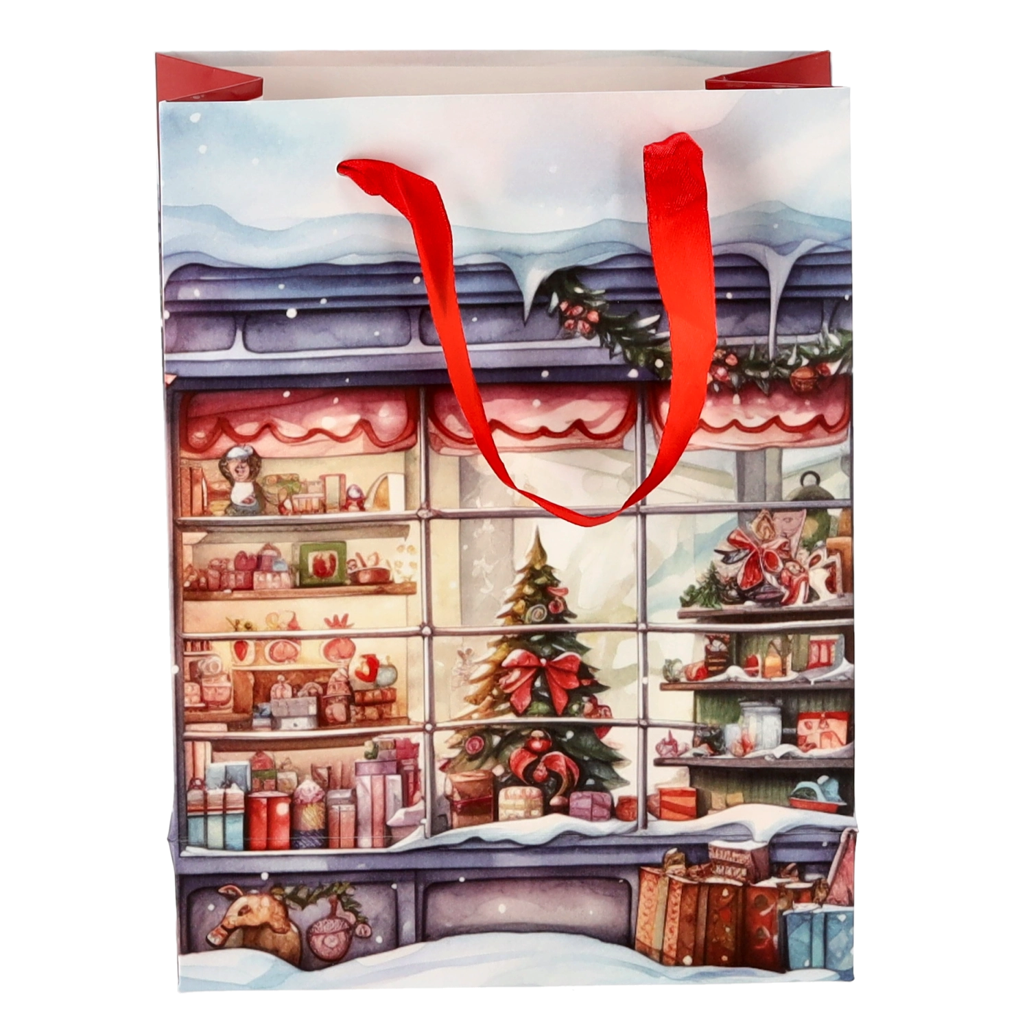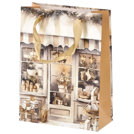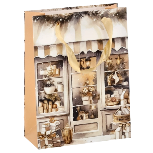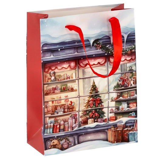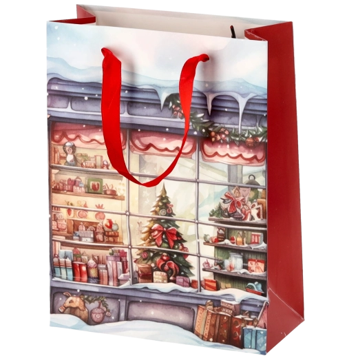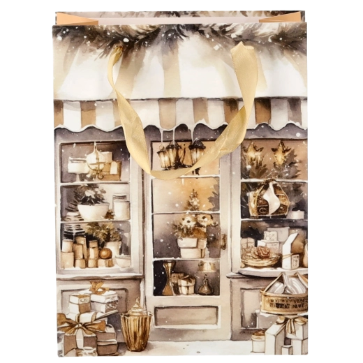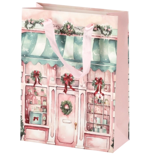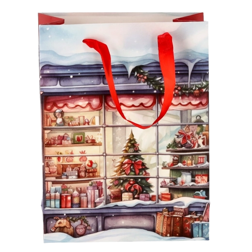 Transformă ambalarea cadoului într-o adevărată experiență. Această pungă de Crăciun cu ilustrație de căsuță în stil tradițional este alegerea ideală pentru sezonul festiv. Datorită dimensiunilor compacte, dar încăpătoare, găzduiește confortabil cărți, cosmetice, lumânări sau seturi mici de cadouri.