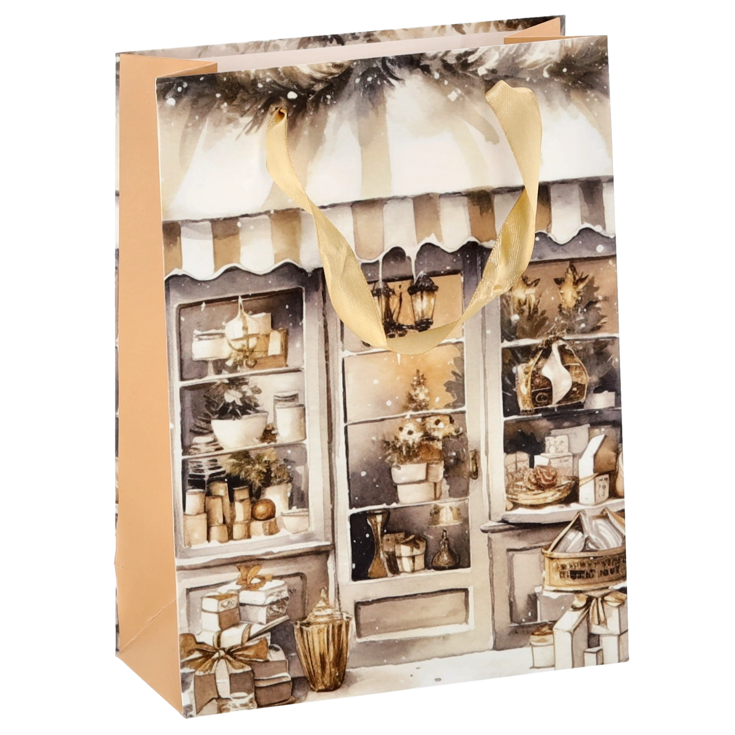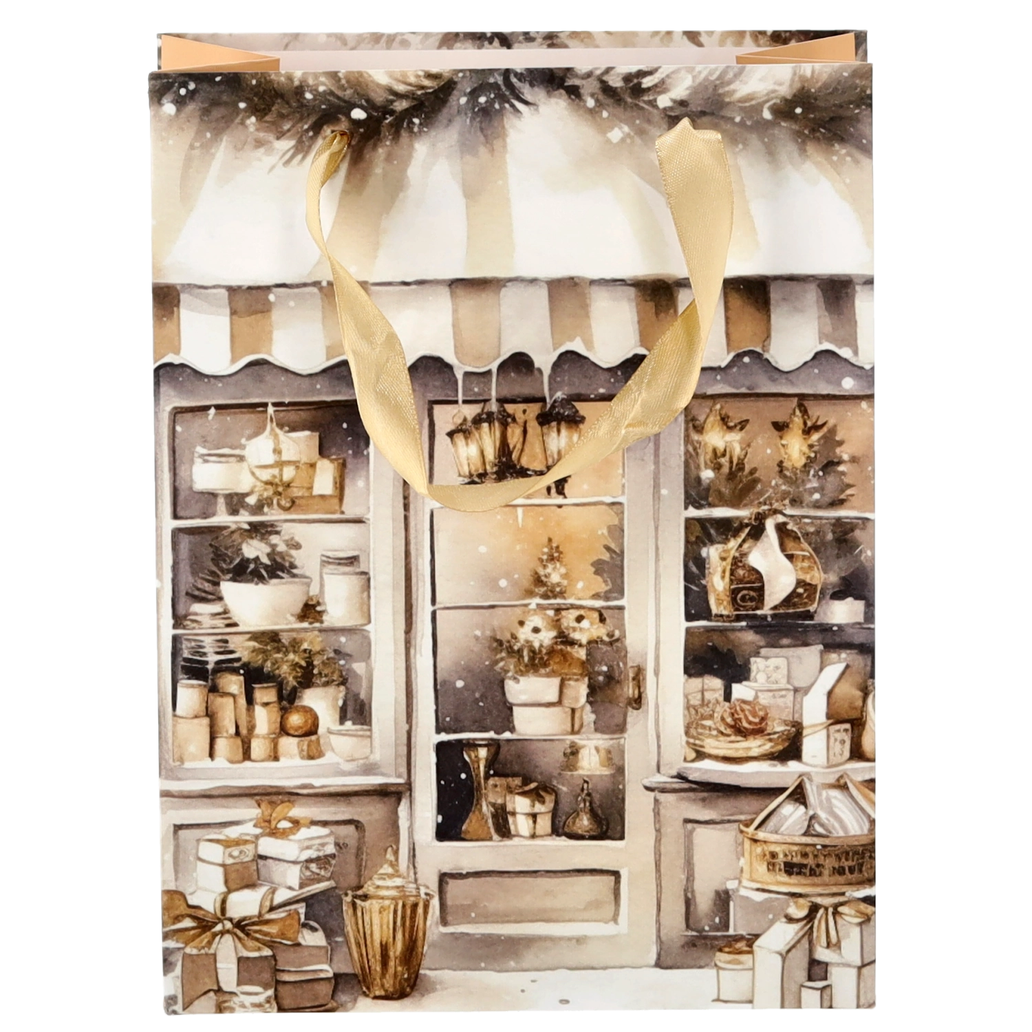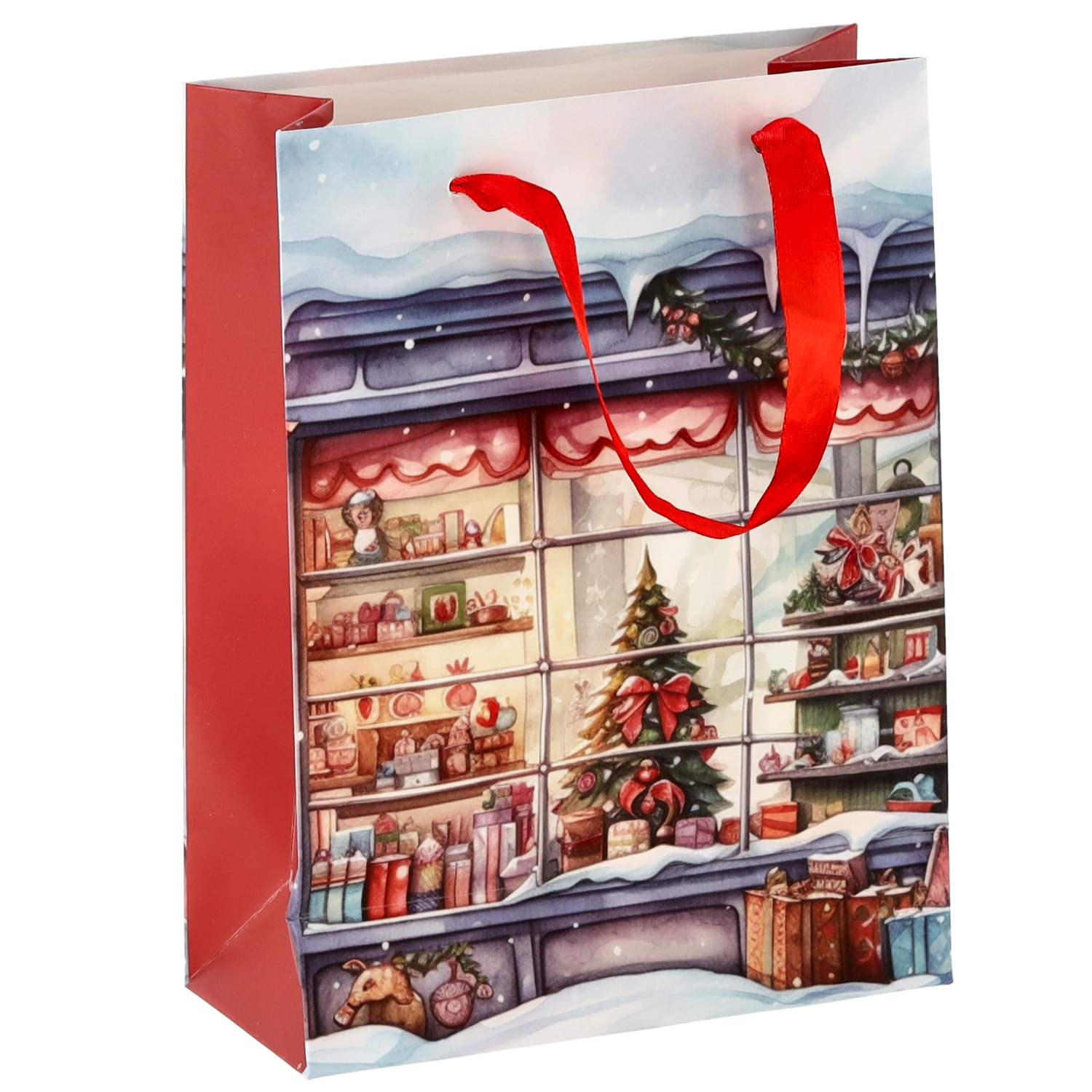 Transformă ambalarea cadoului într-o adevărată experiență. Această pungă de Crăciun cu ilustrație de căsuță în stil tradițional este alegerea ideală pentru sezonul festiv. Datorită dimensiunilor compacte, dar încăpătoare, găzduiește confortabil cărți, cosmetice, lumânări sau seturi mici de cadouri.