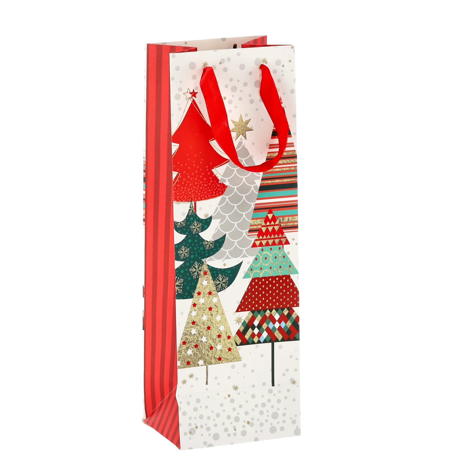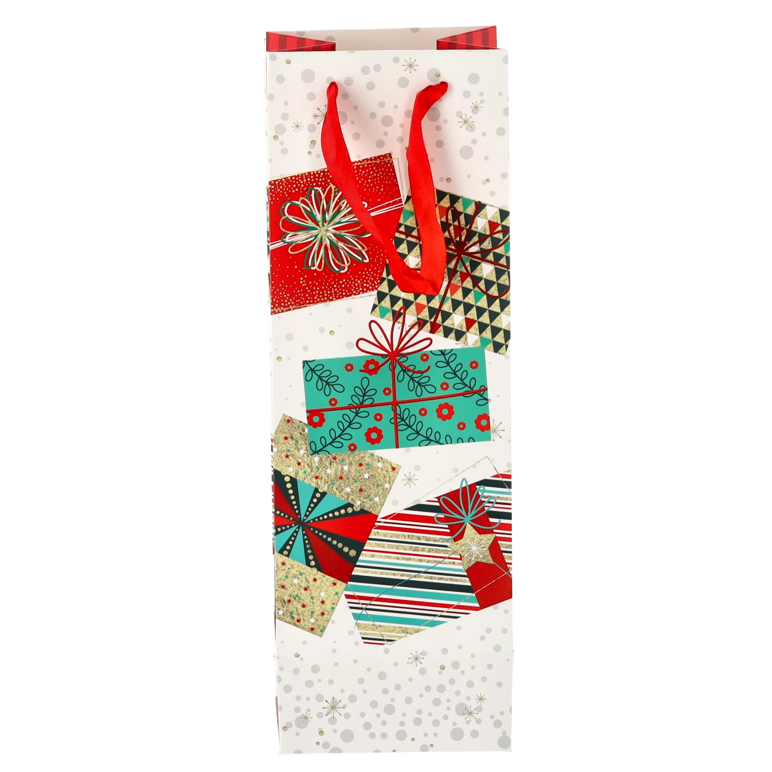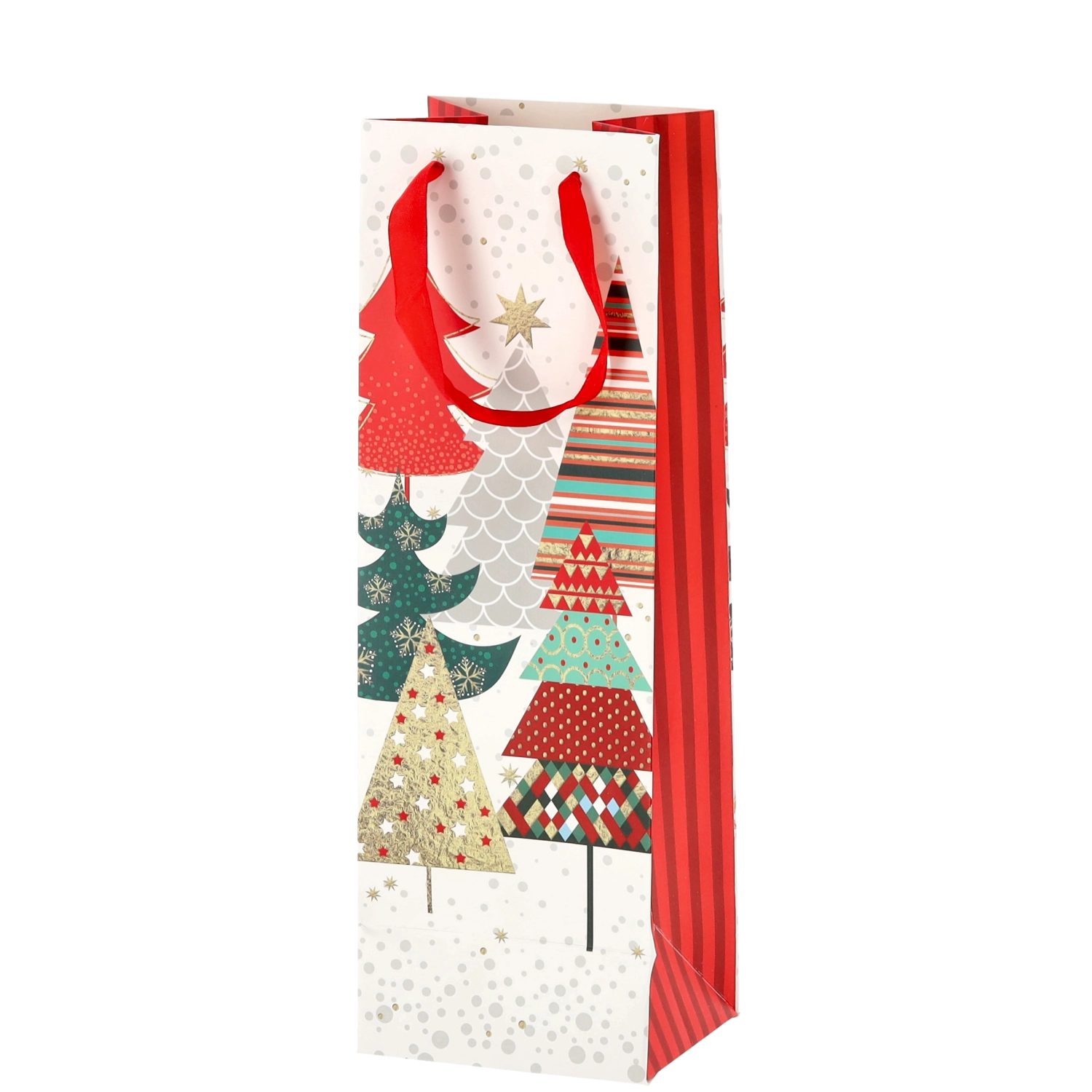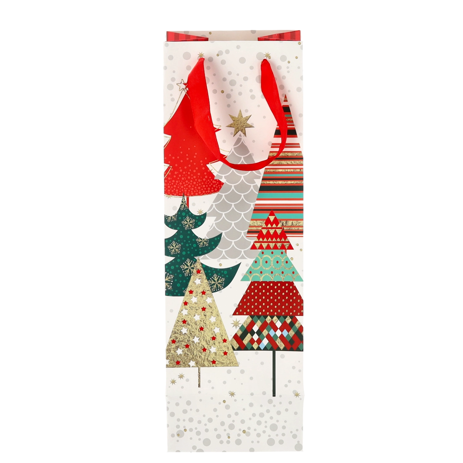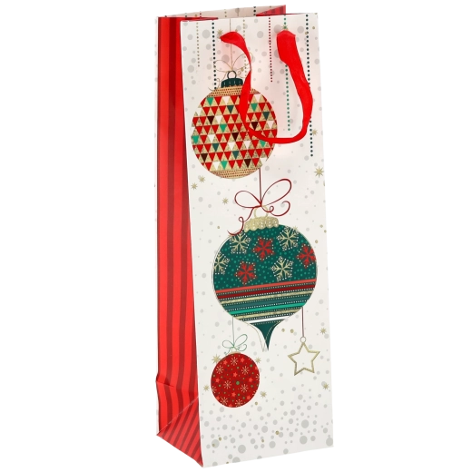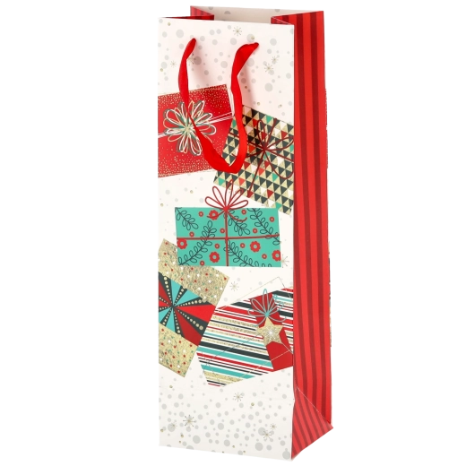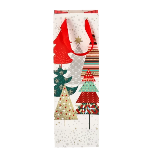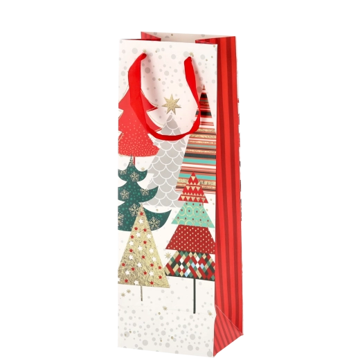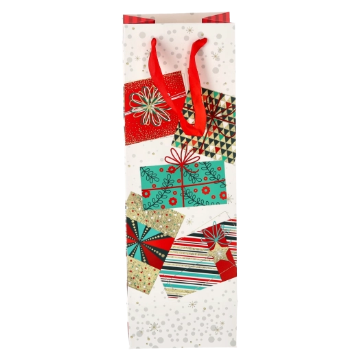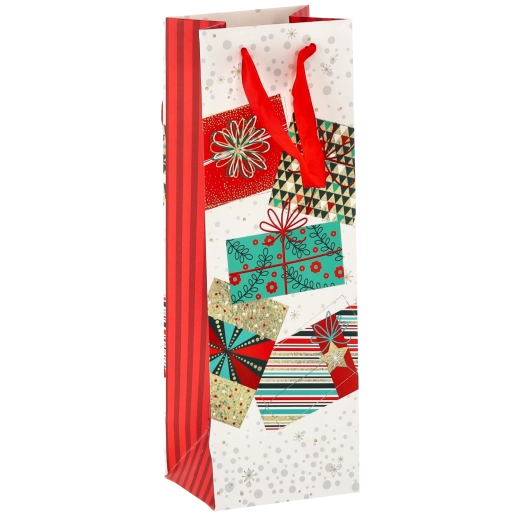 Transformați orice sticlă de vin într-un cadou reprezentativ. Această pungă cadou de Crăciun oferă o bază albă curată cu motive festive pronunțate, conferind cadoului un aspect premium. Construcția solidă din hârtie de calitate protejează conținutul în timpul transportului.