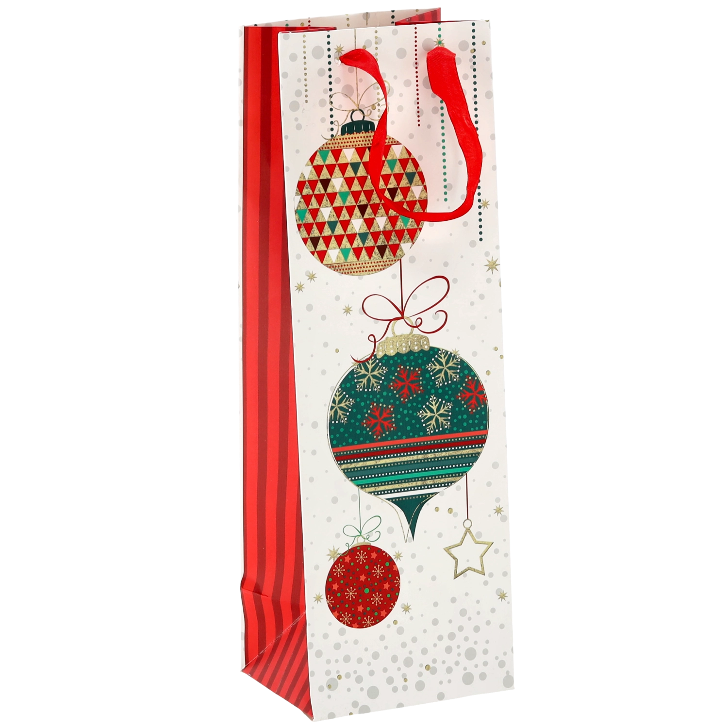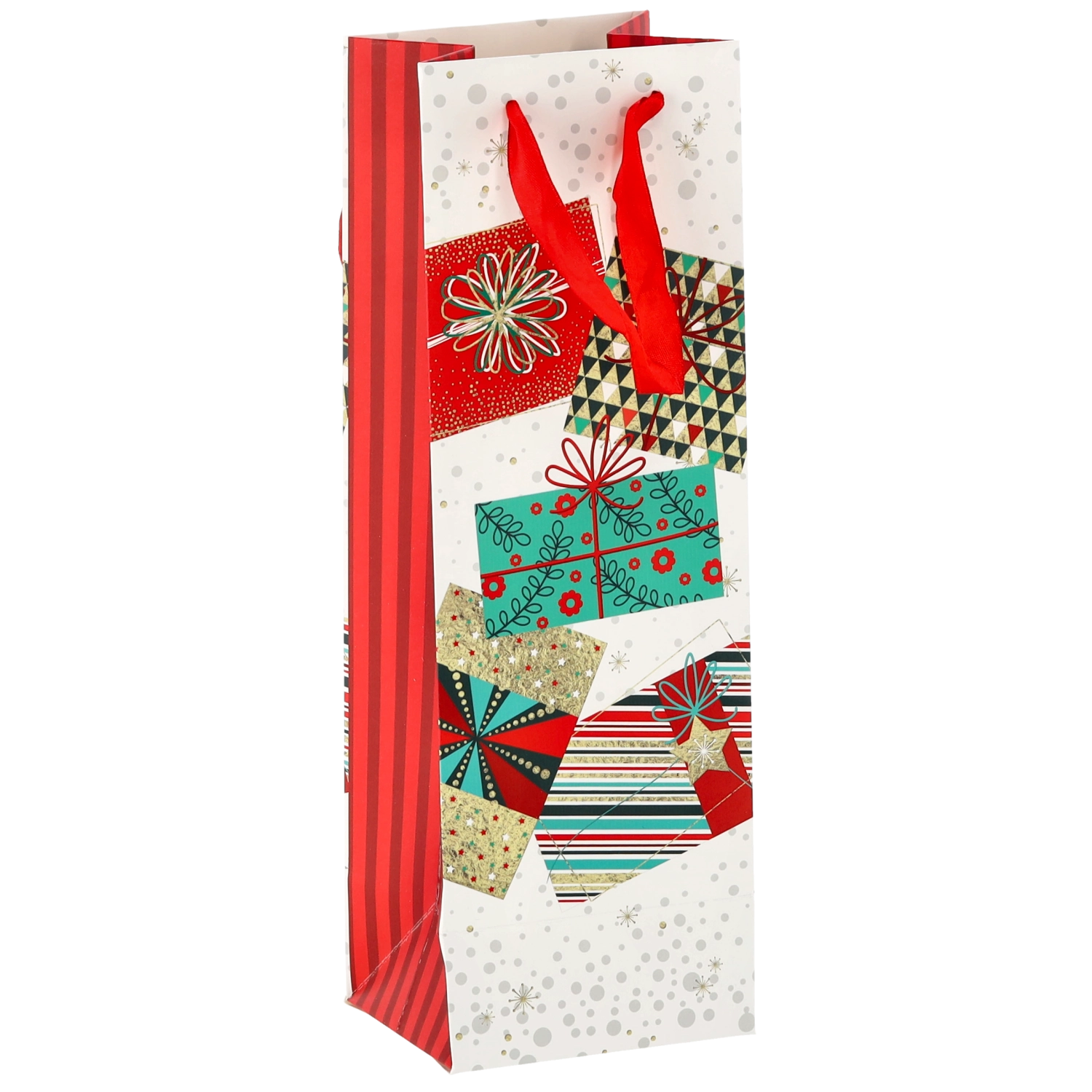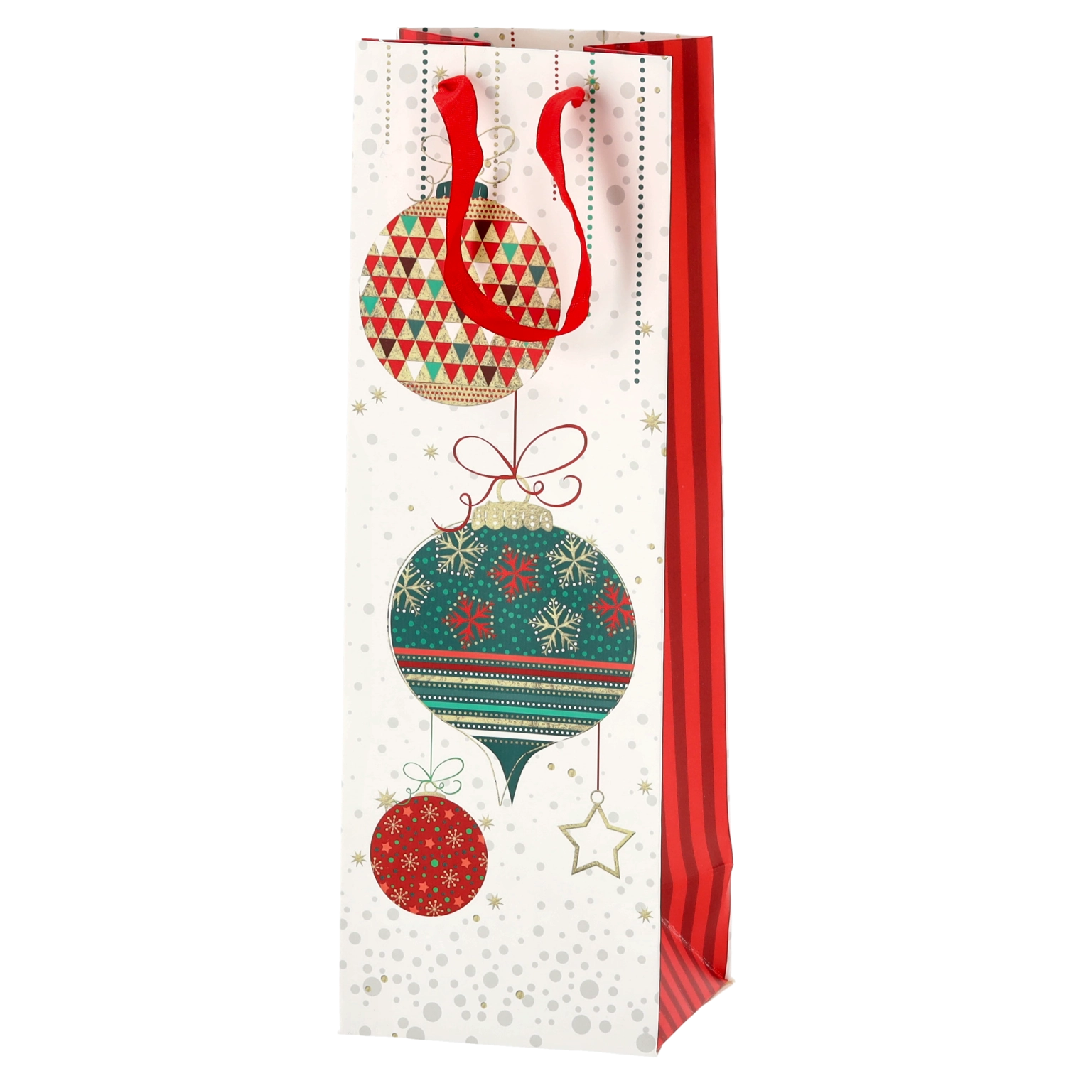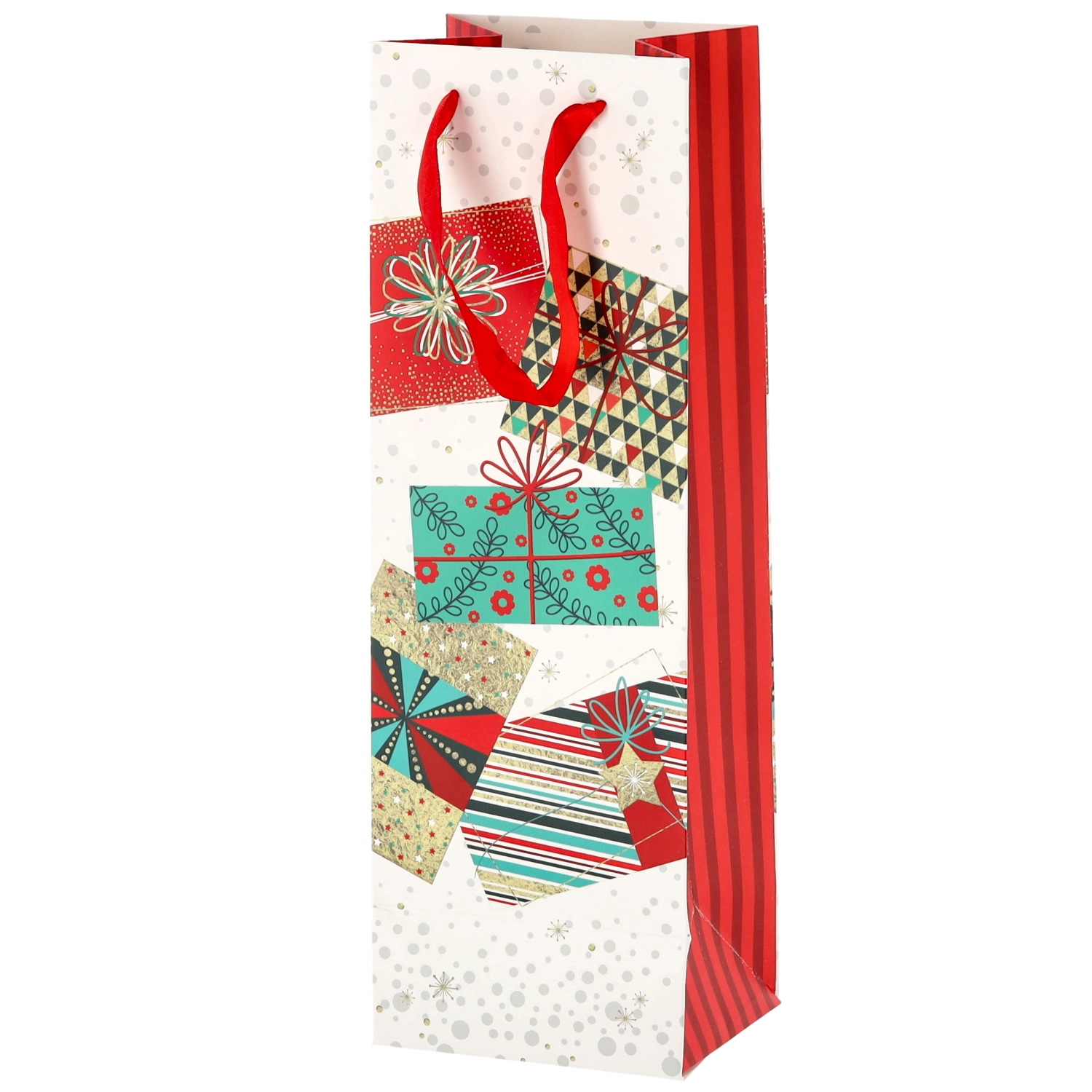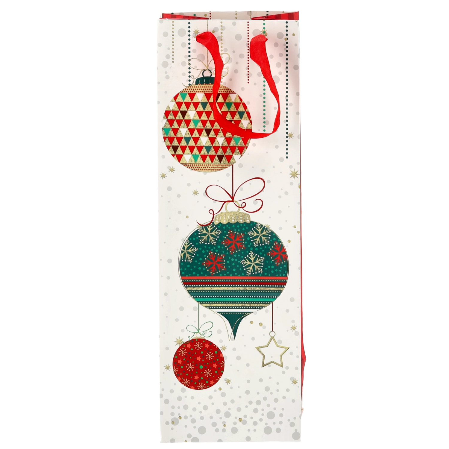 Transformați orice sticlă de vin într-un cadou reprezentativ. Această pungă cadou de Crăciun oferă o bază albă curată cu motive festive pronunțate, conferind cadoului un aspect premium. Construcția solidă din hârtie de calitate protejează conținutul în timpul transportului.