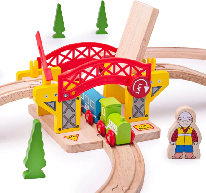 Podul roț de lemn este un accesoriu perfect pentru orice cale ferată din lemn. Acest pod este compatibil cu toate căile ferate din lemn de pe piață și este fabricat din materiale naturale de calitate și obținute responsabil. Construcția, care susține creativitatea, îndemânarea și coordonarea, oferă funcții realiste precum ridicarea podului.