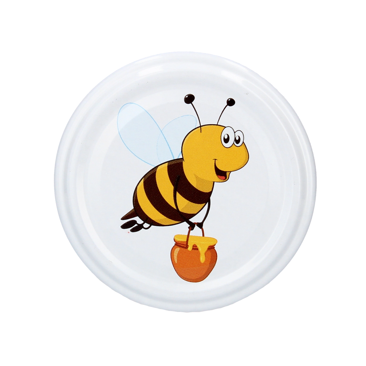 Set practic de 10 capace cu diametrul de 82 mm pentru conservarea în casă. Dimensiune universală potrivită pentru majoritatea borcanelor obișnuite, material metalic rezistent care asigură o închidere etanșă și durabilitate îndelungată. Motivul elegant cu albinuță oferă conservelor tale un aspect atrăgător.