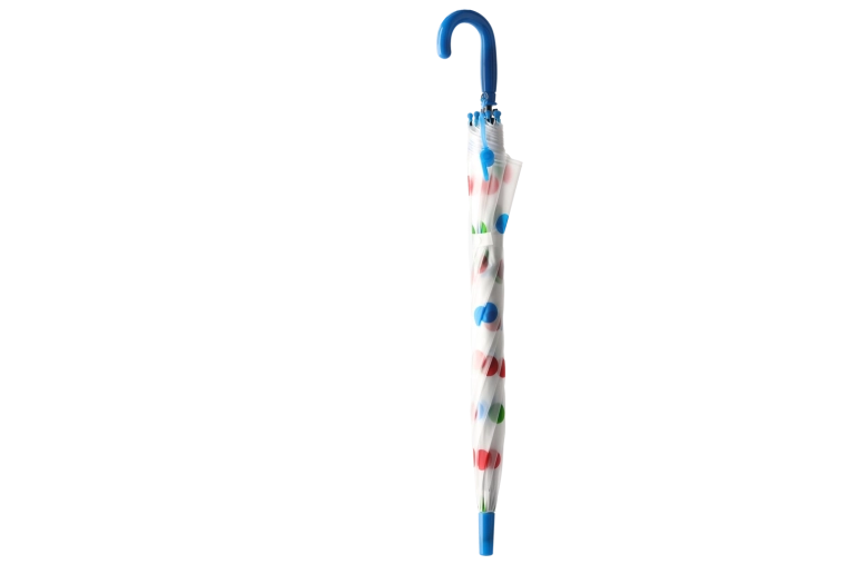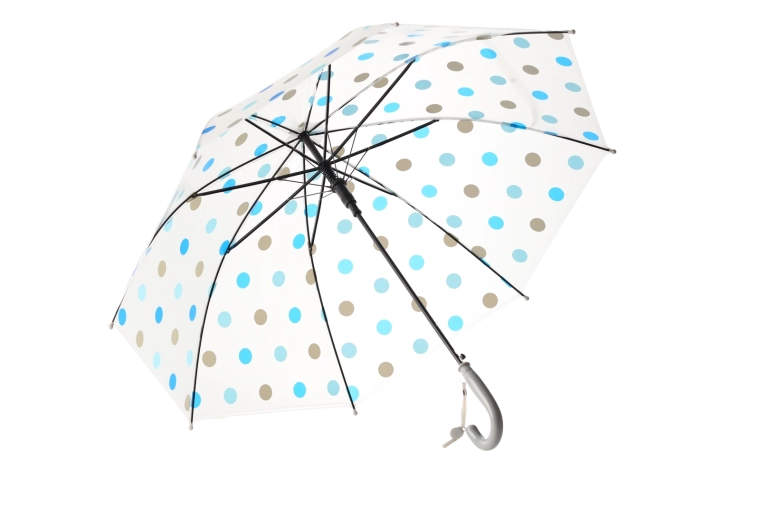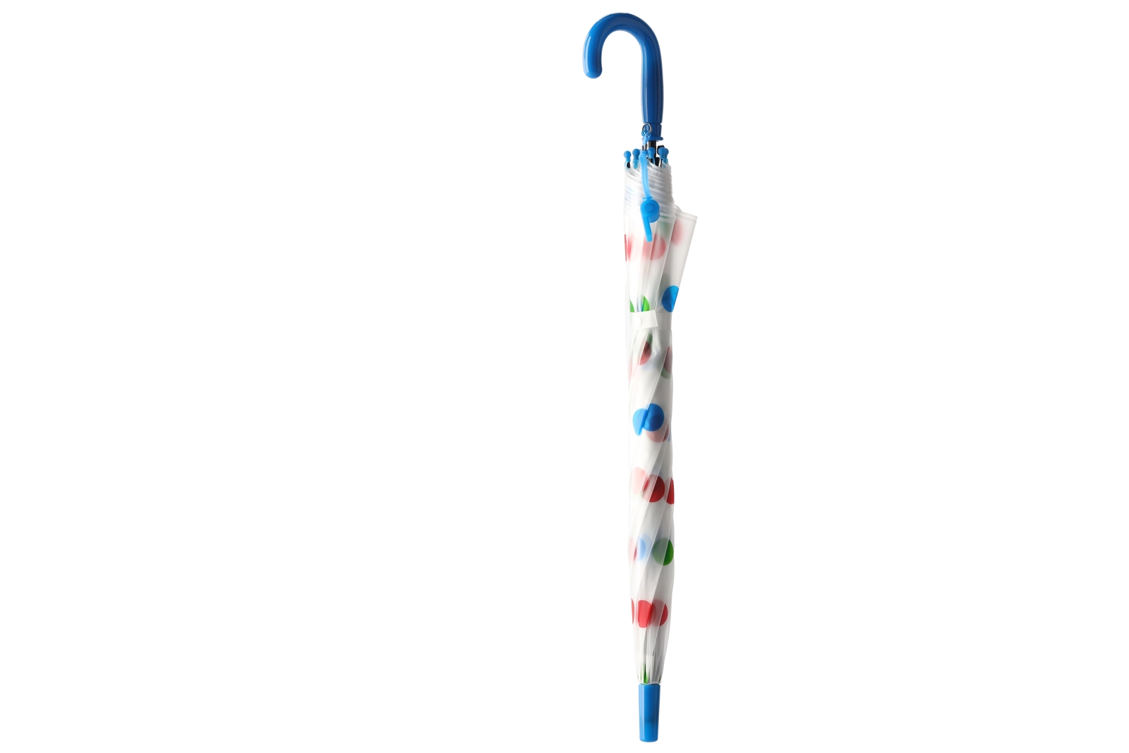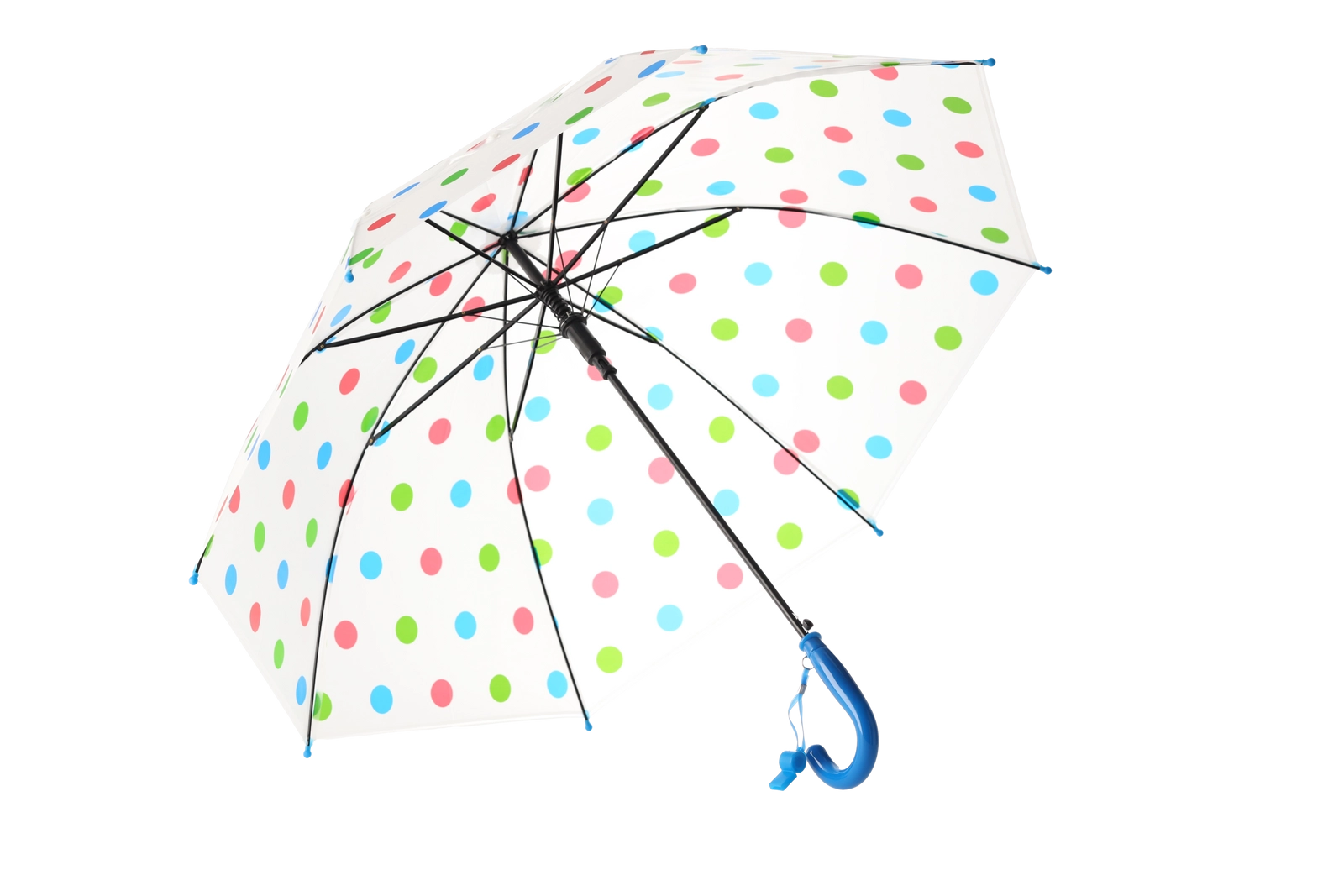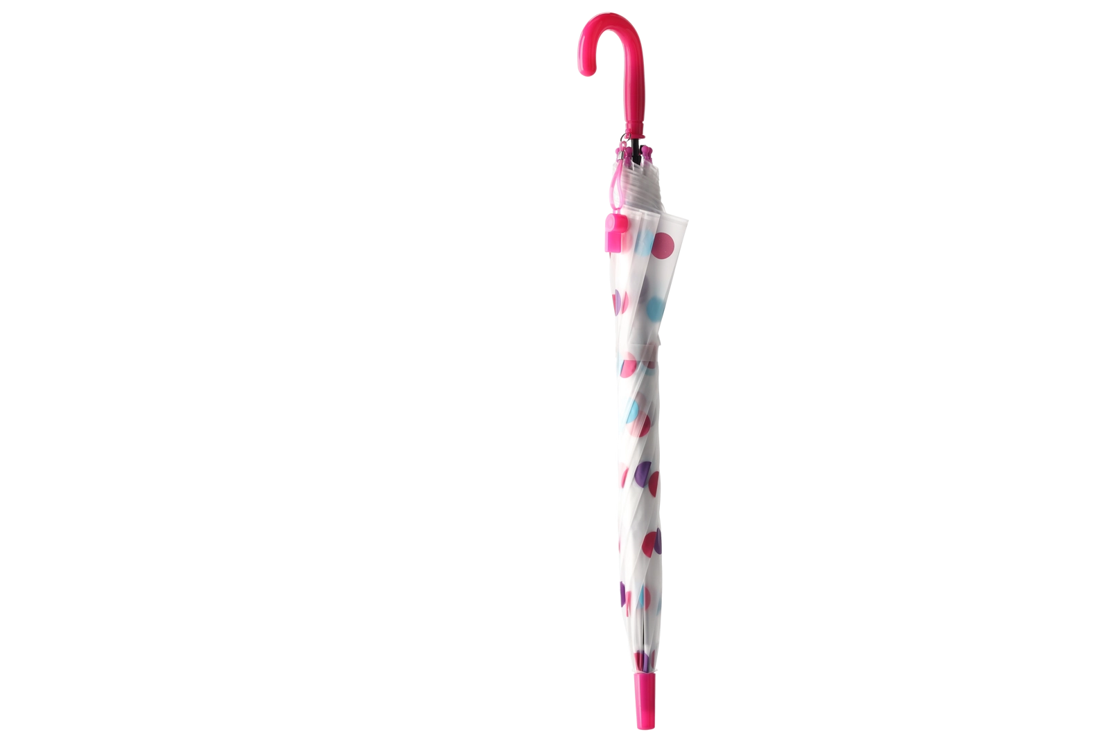 Baldachinul transparent, stilat, cu buline multicolore se potrivește cu diverse ținute și, în același timp, îmbunătățește vizibilitatea asupra împrejurimilor atunci când mergi pe ploaie.