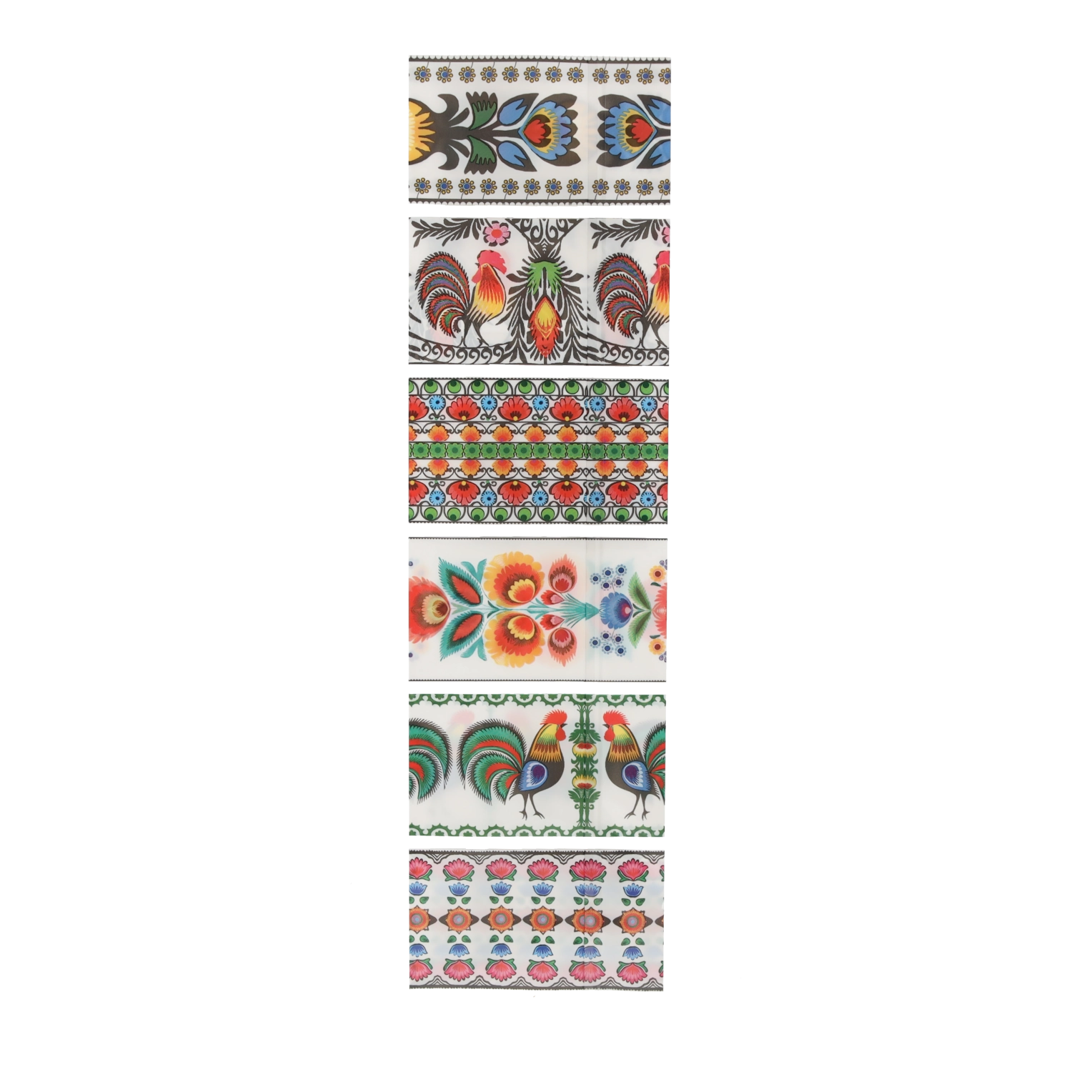 Setul conține mai multe modele coordonate cu estetică de primăvară și folclorică, care înfrumusețează orice coș și masă festivă.