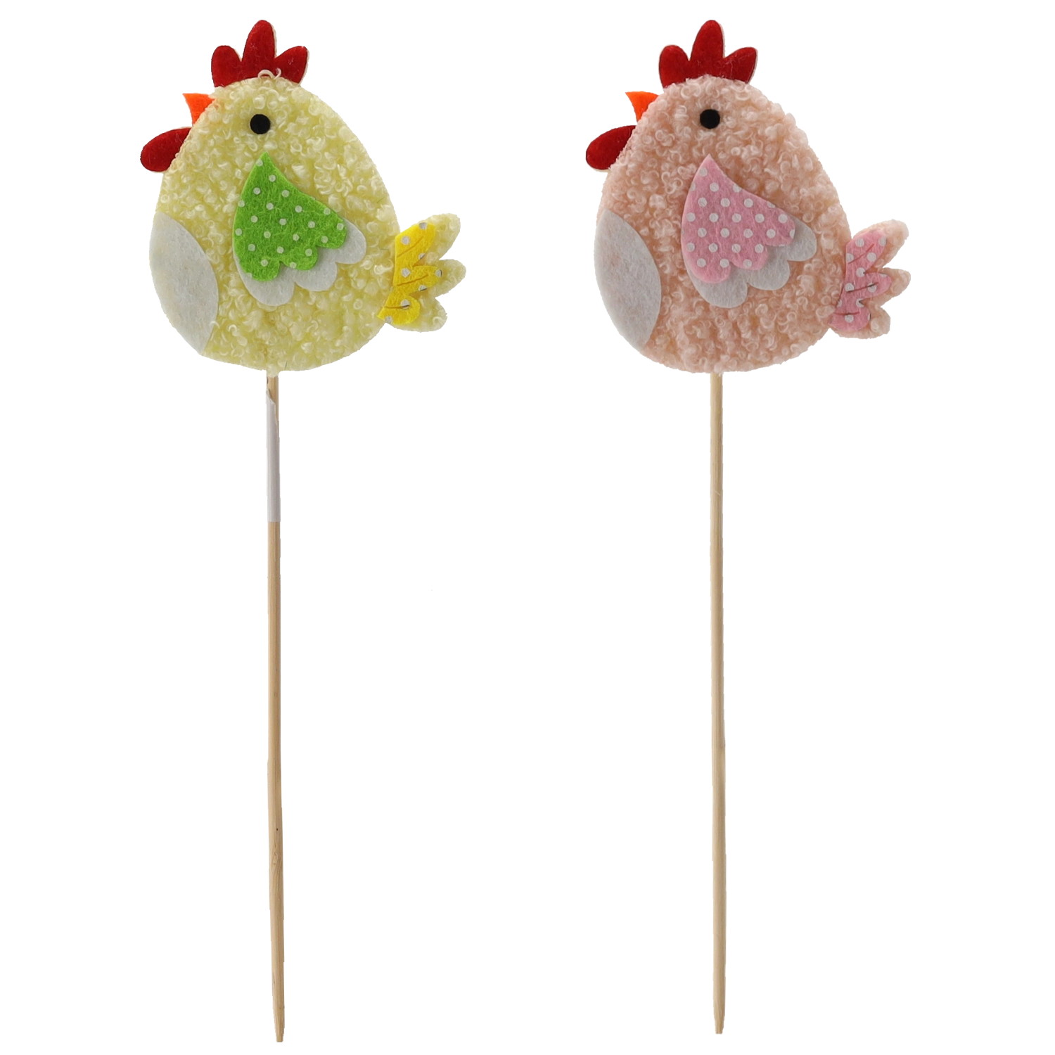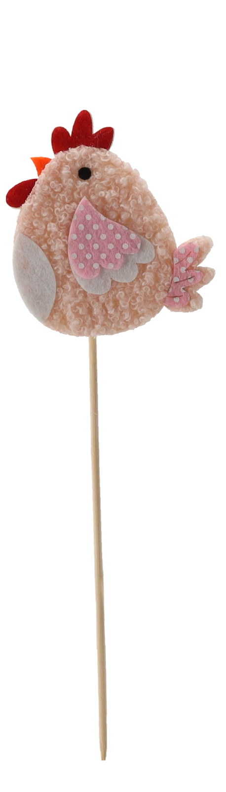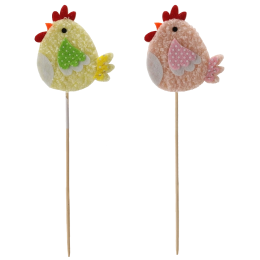 Înveselește decorul de primăvară cu o drăgălașă găinușă pe bețișor – ideală pentru ghivece, aranjamente florale și coșulețe. Ambalajul de 12 bucăți în două variante de culoare asigură o decorațiune variată și armonioasă. Datorită dimensiunilor compacte de 7,5 × 8 cm și fixării ferme pe bețișor, se poziționează ușor și își păstrează forma. Materialele de calitate garantează rezistență și durată lungă de viață.