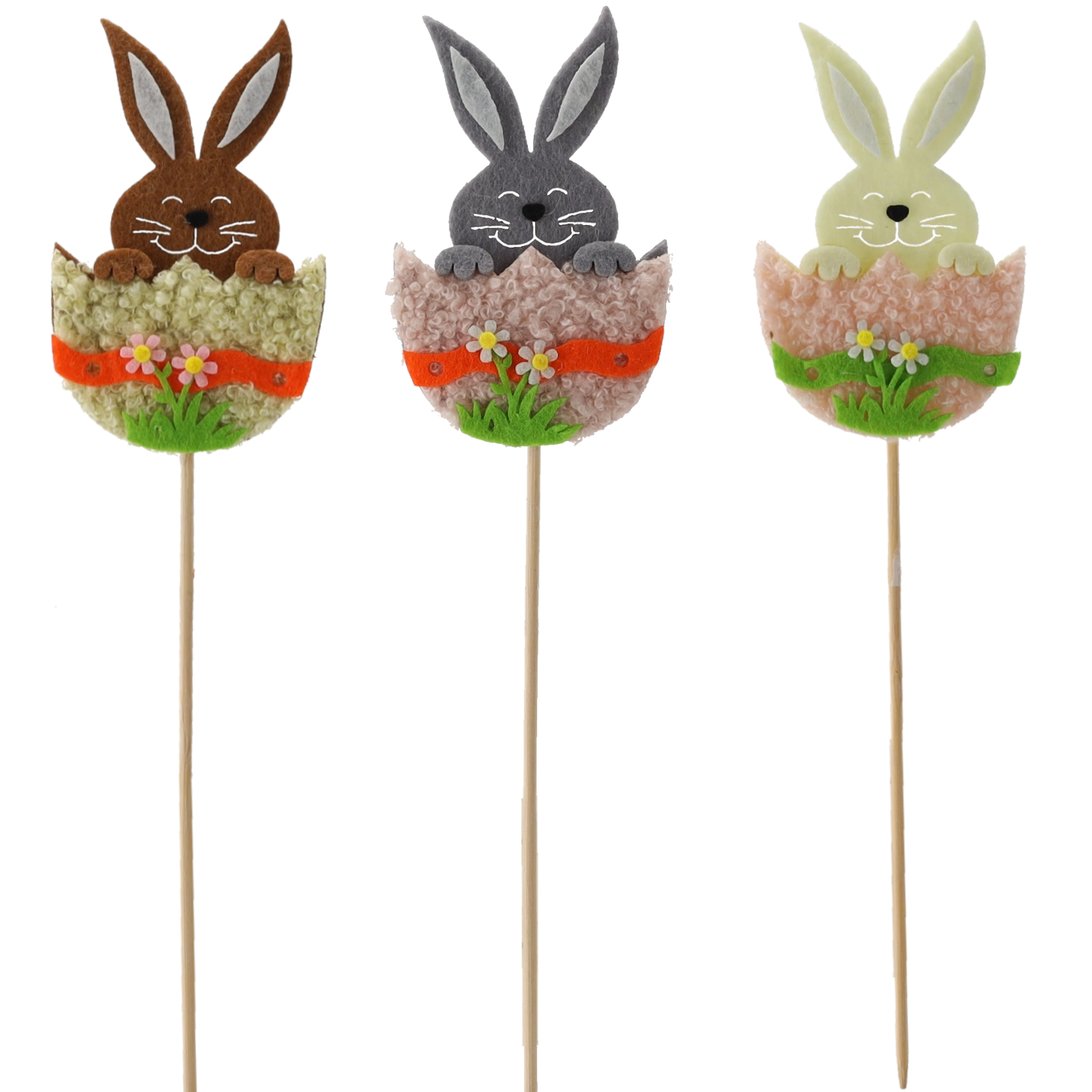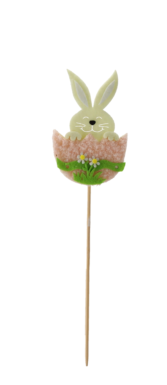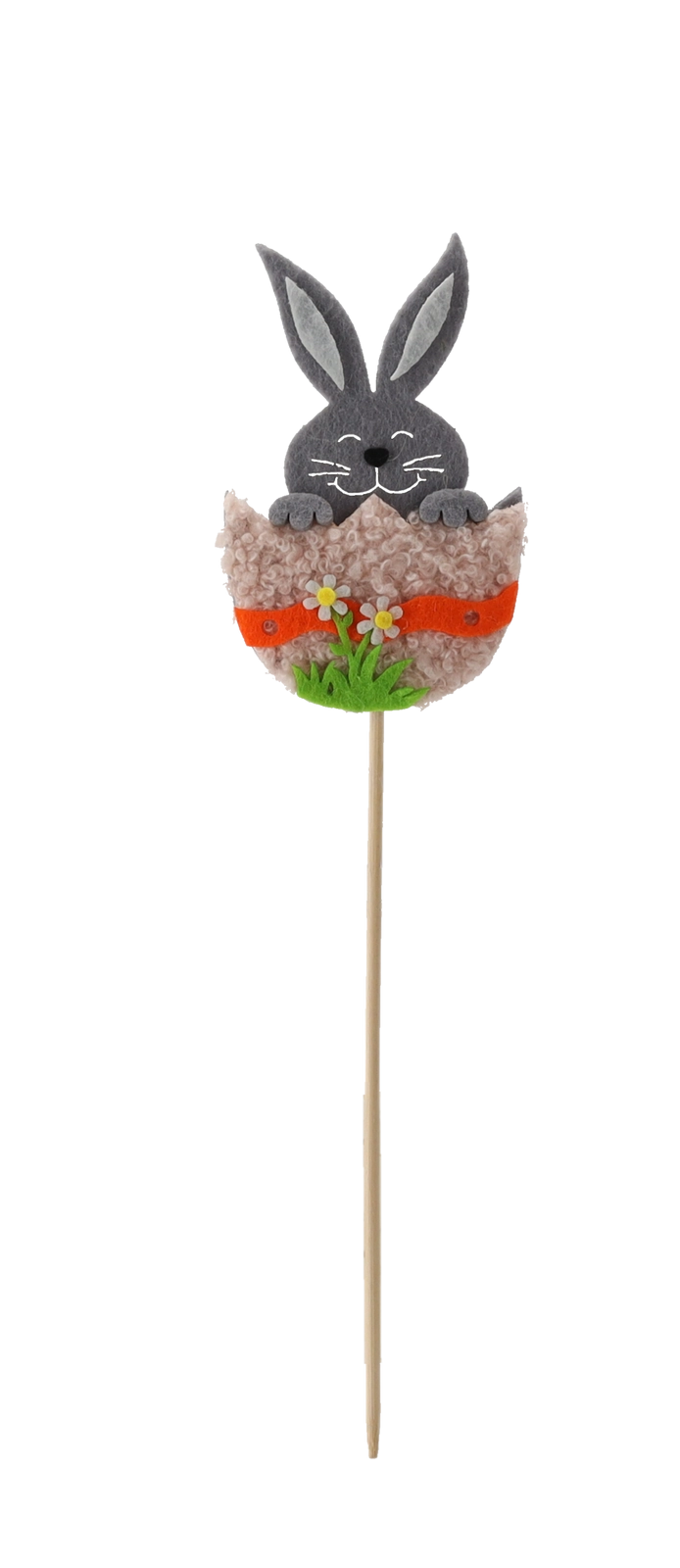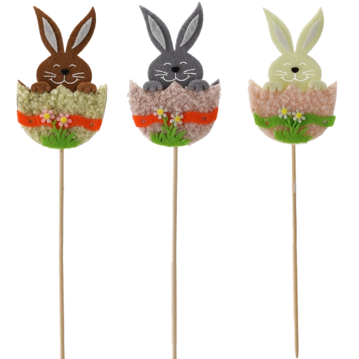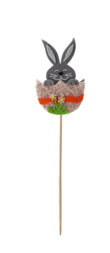 Crează acasă o atmosferă de sărbătoare cu simpaticul iepuraș în coajă de ou pe băț din lemn. Decorațiunea este ușoară, stabilă și se fixează excelent atât în substrat, cât și în spuma florală. Mixul de trei culori permite combinații creative în aranjamentele de primăvară și de Paște.