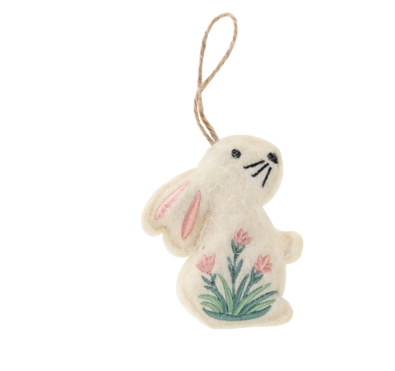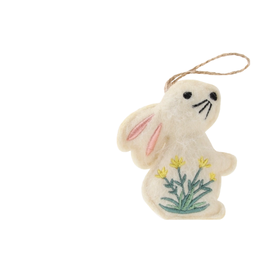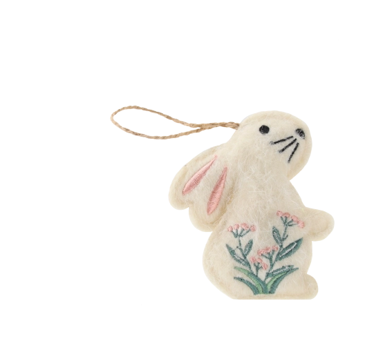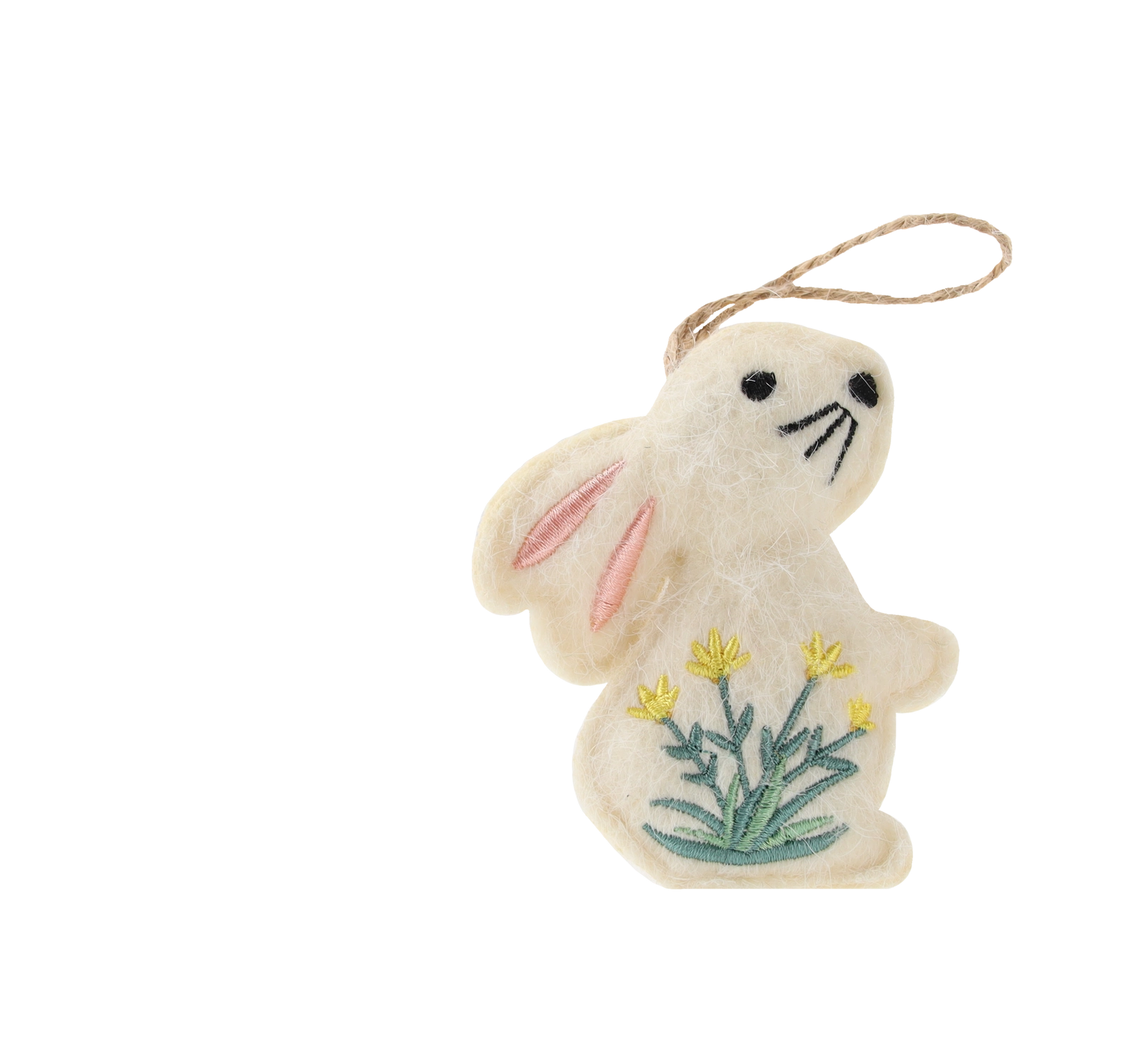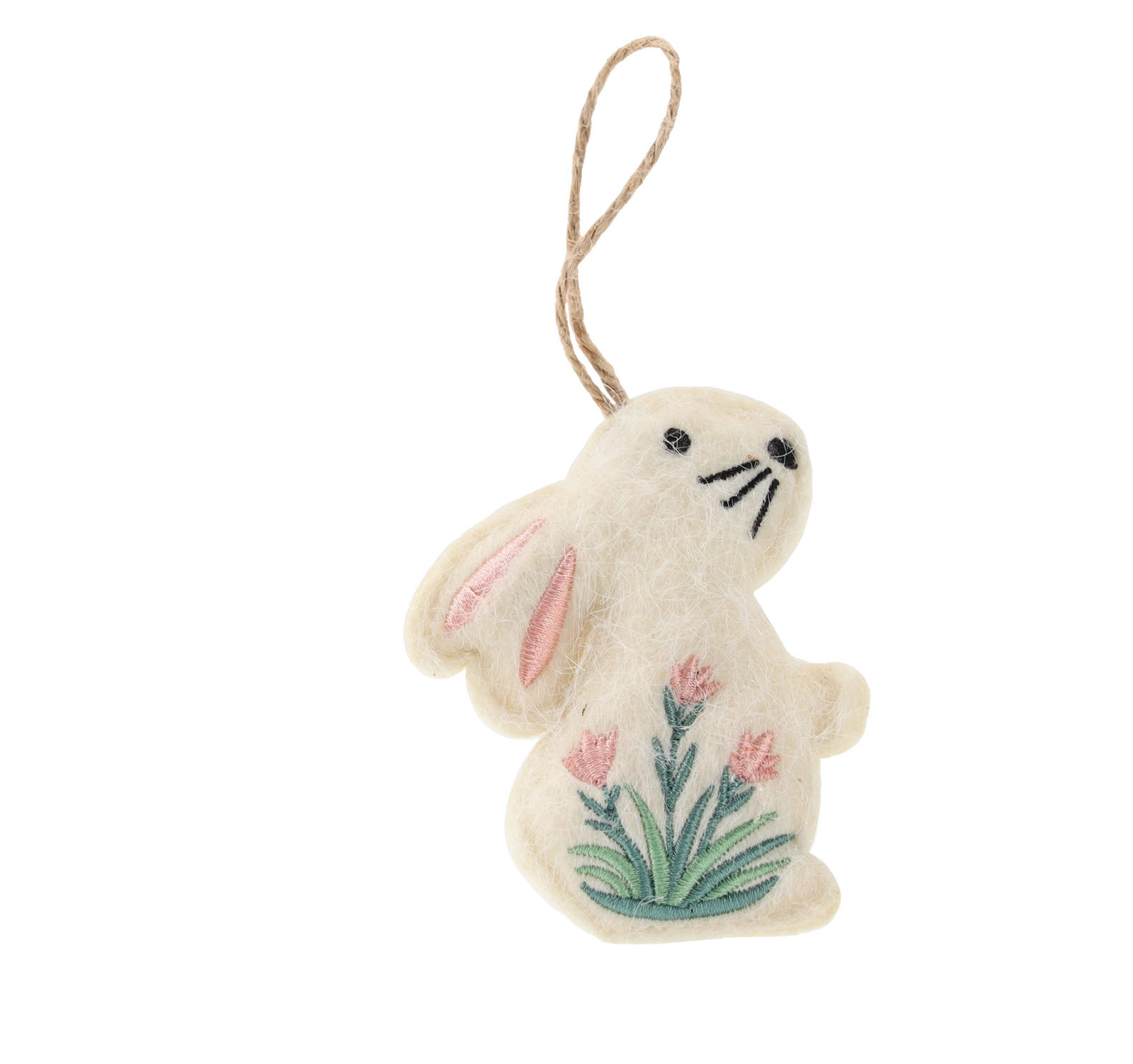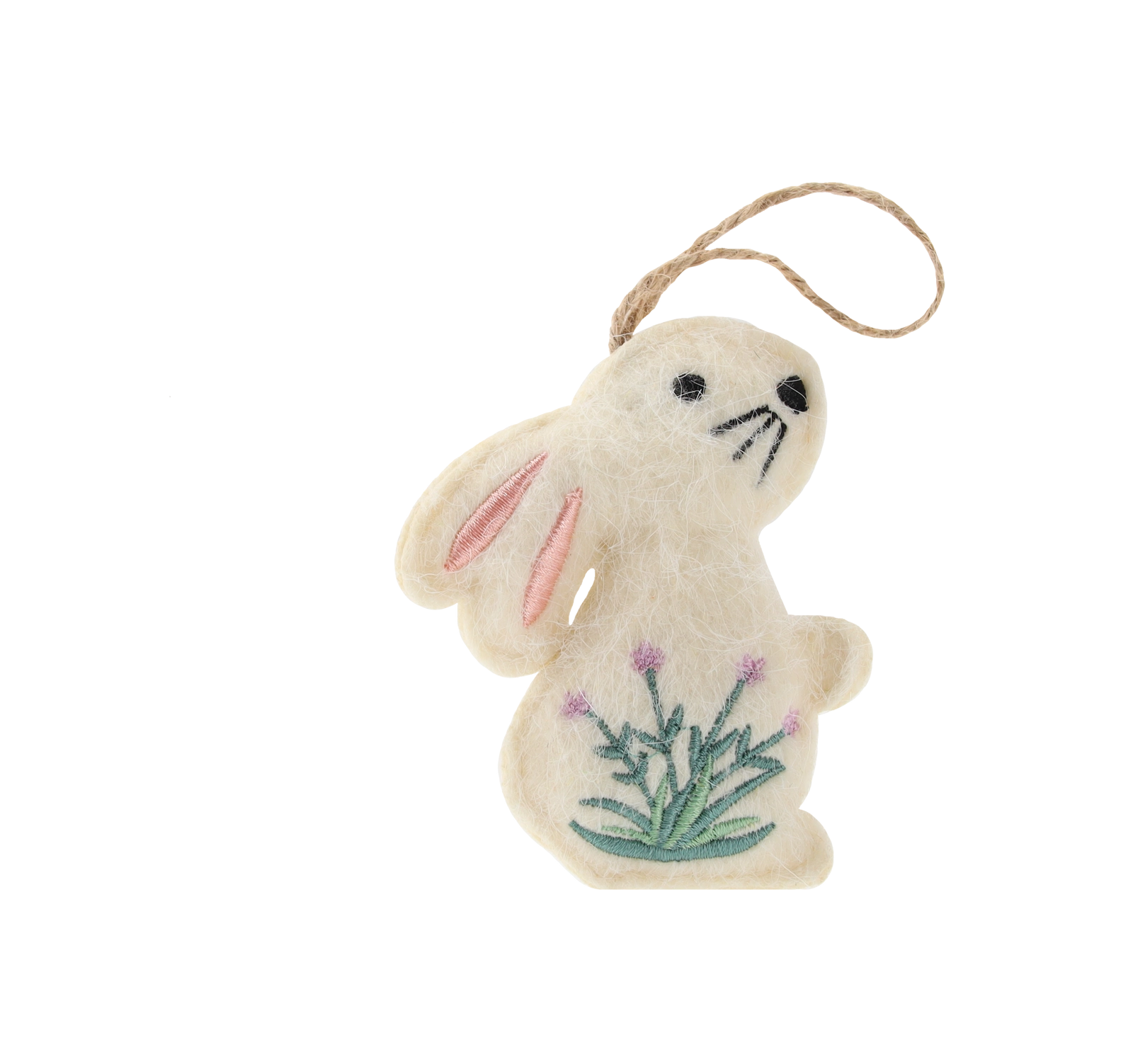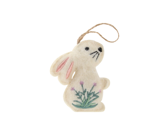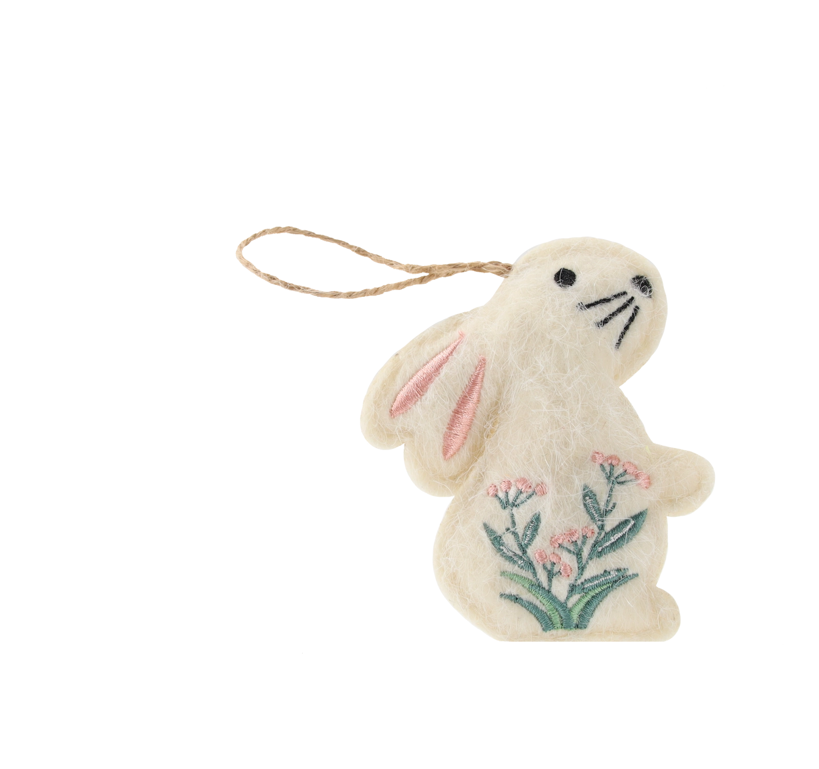 Creați o atmosferă plăcută de primăvară cu iepurași eleganți pentru agățat, care se remarcă pe ramuri, mâțișori, coroane, ferestre și uși. Materialul textil moale, cu broderie fină florală, are un aspect natural și primitor, integrându-se frumos în numeroase stiluri decorative – de la rustic la scandinav.