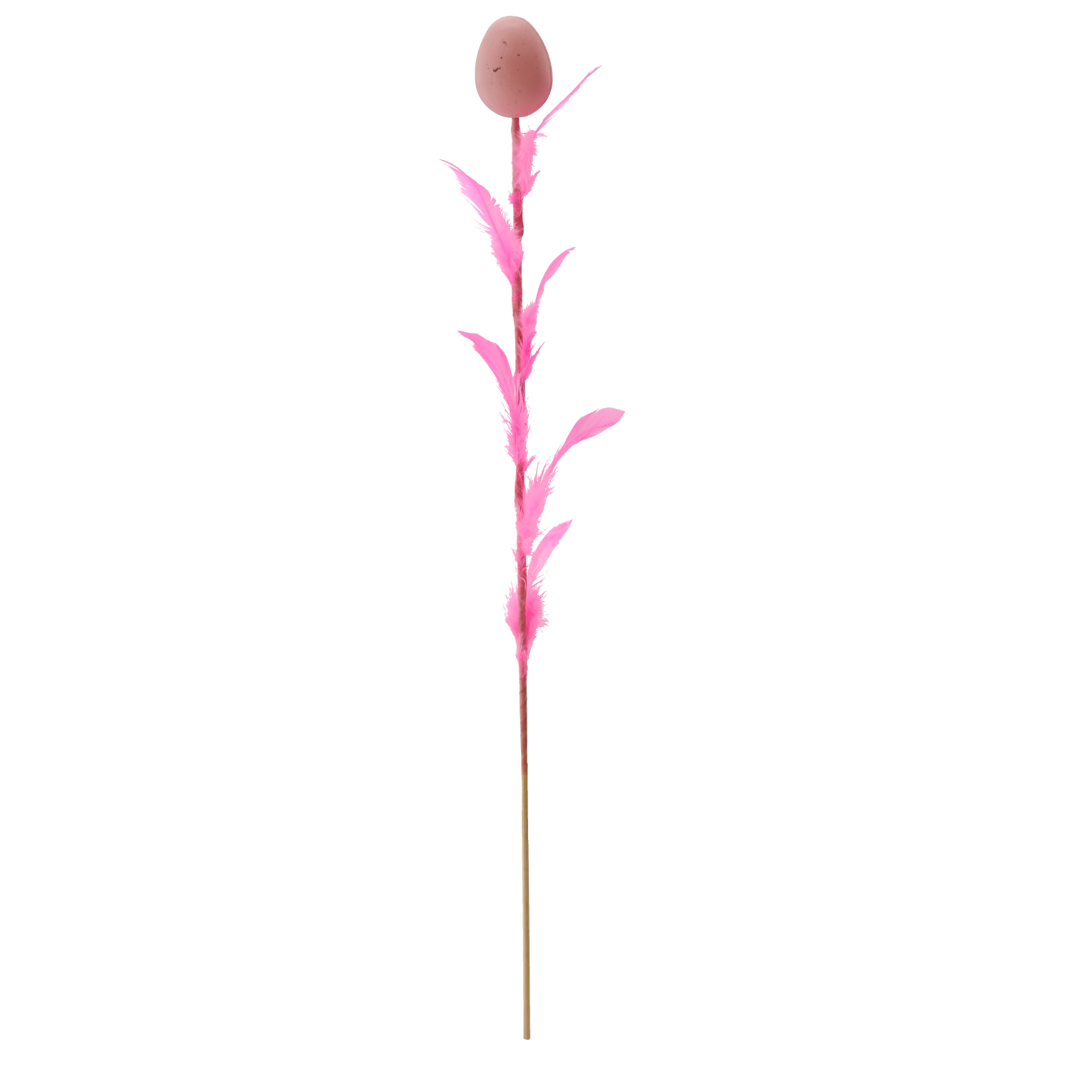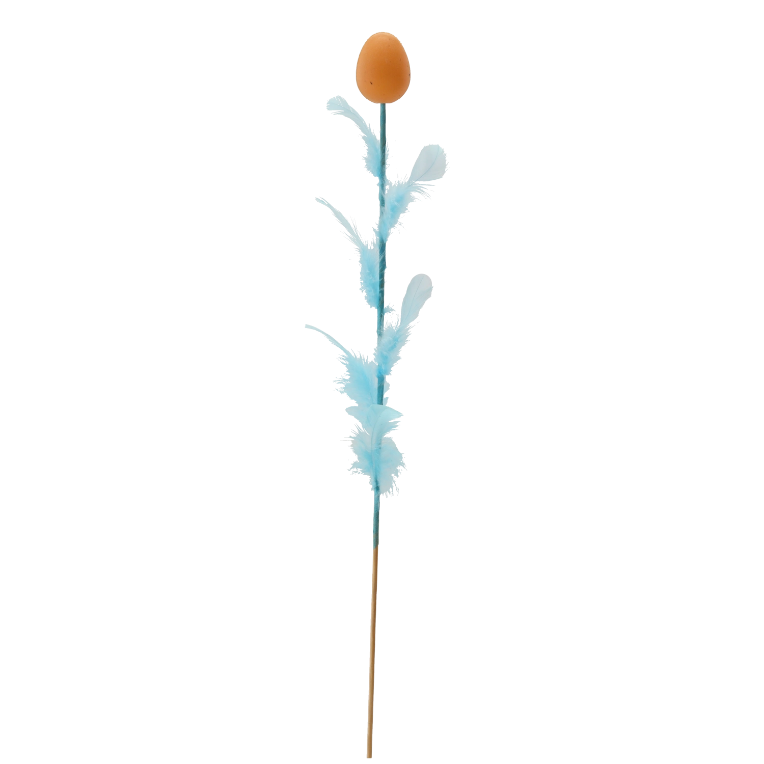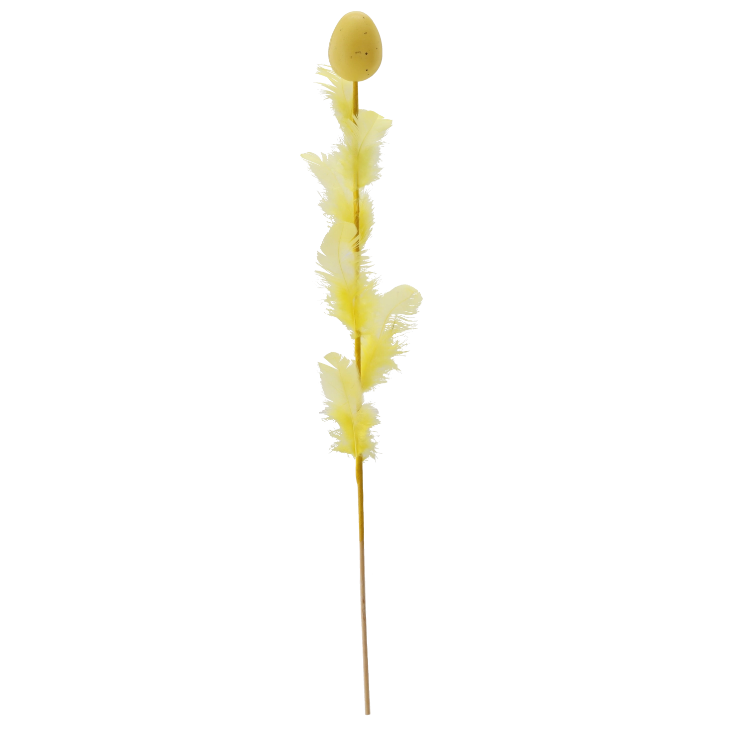 Decorațiune elegantă de Paște în formă de ou cu pene pe bețișor, lungime 45 cm, care va ilumina aranjamentele tale festive. Oferă un mix de patru culori proaspete, ce adaugă varietate și atmosferă de primăvară interiorului. Penele fine pentru lejeritate și aerisire o fac o alegere ideală pentru buchete, coșulețe și vaze.