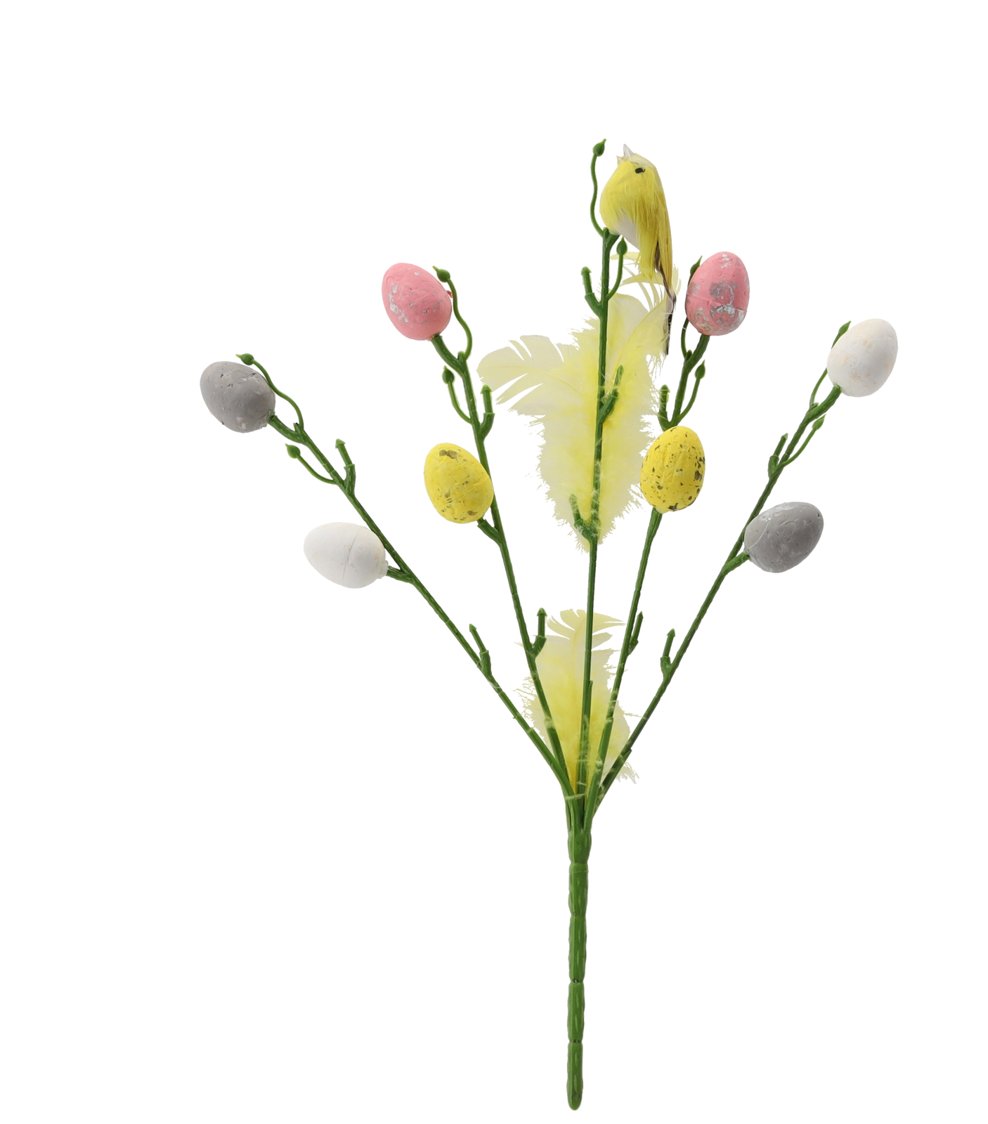 Ramura este ușoară, fără întreținere și, datorită fixării ferme, se poziționează simplu în aranjamente. Nuanțele pastelate aduc prospețime și evidențiază atmosfera festivă a Paștelui.