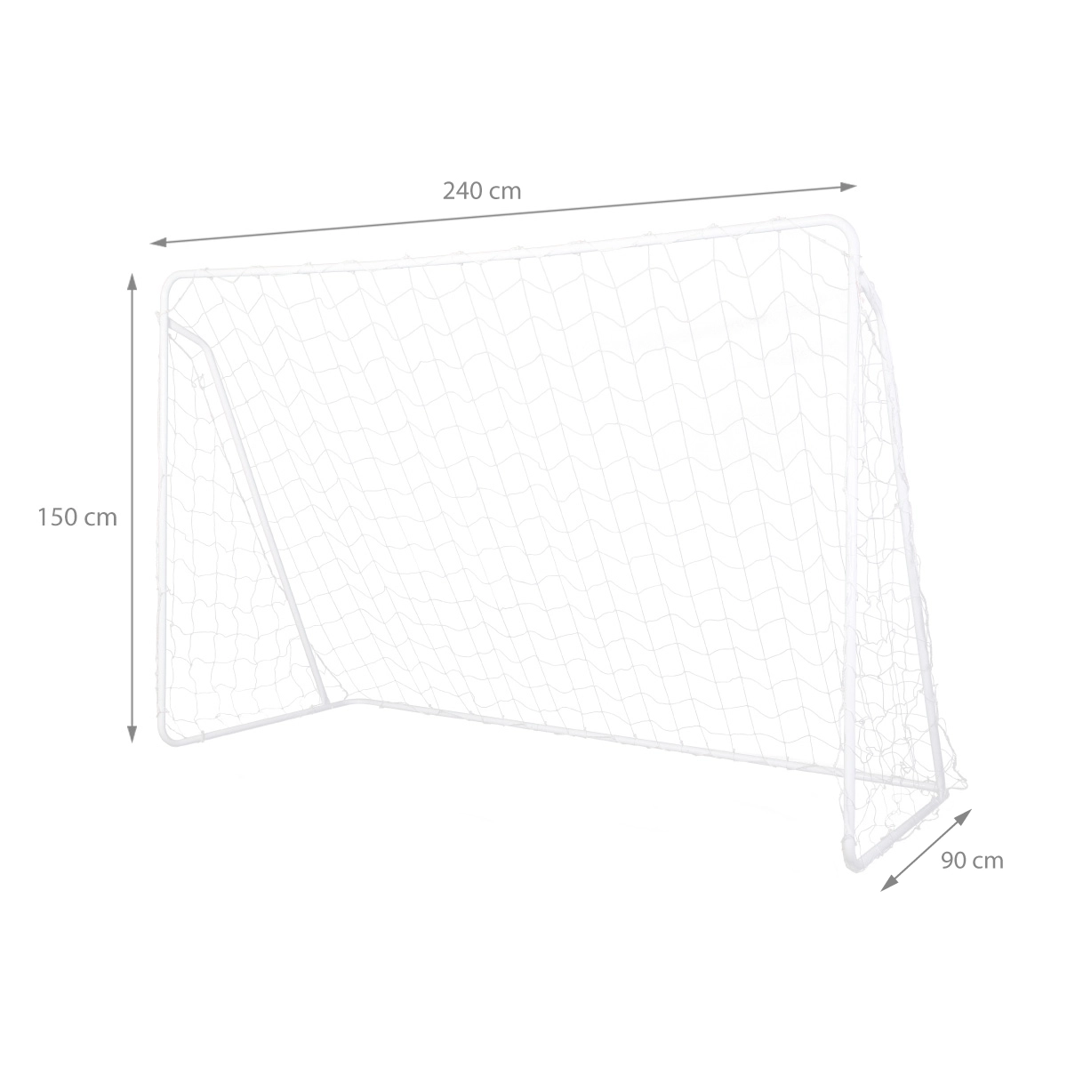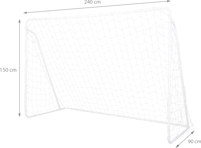 Cadru din țevi de oțel (Ø 25 mm) și plasă PE cu ochiuri de 12 × 12 cm, rezistente la utilizare intensă și capabile să rețină în mod fiabil mingile.
