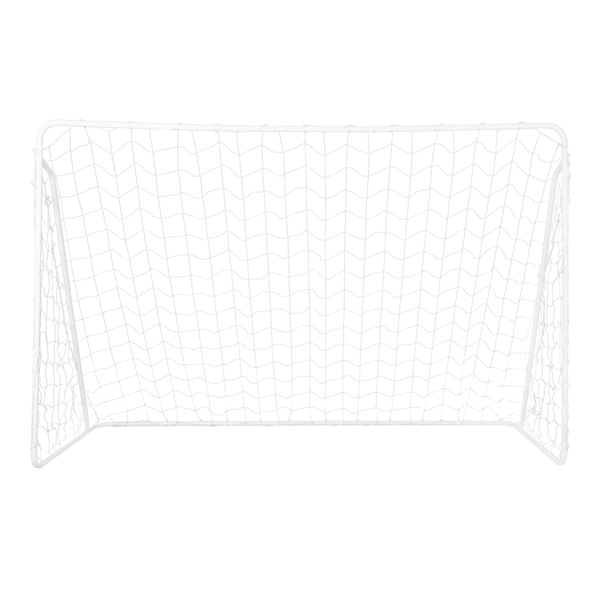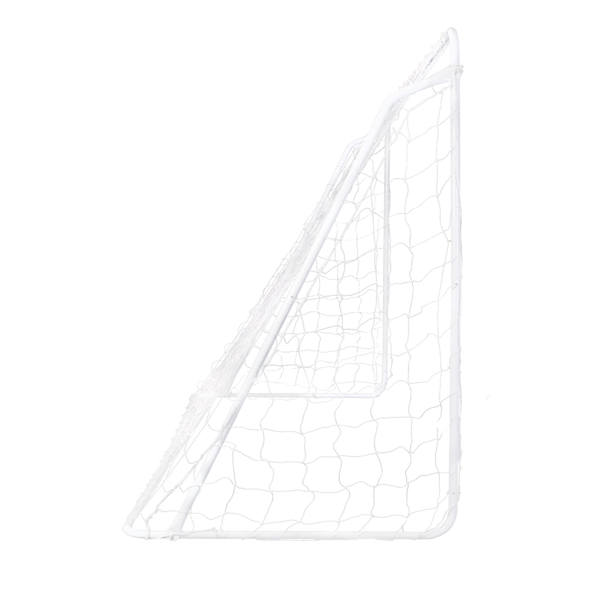 Cadrul din țevi cu diametrul de 25 mm se asamblează ușor, plasa din polietilenă rezistentă (ochiuri 12 × 12 cm) reține în mod fiabil mingile, iar în pachet sunt incluse 8 ancore pentru fixarea porții și 2 ancore pentru ancorarea panoului. Panoul se prinde cu benzi cu scai, astfel montajul și demontajul sunt rapide și simple.