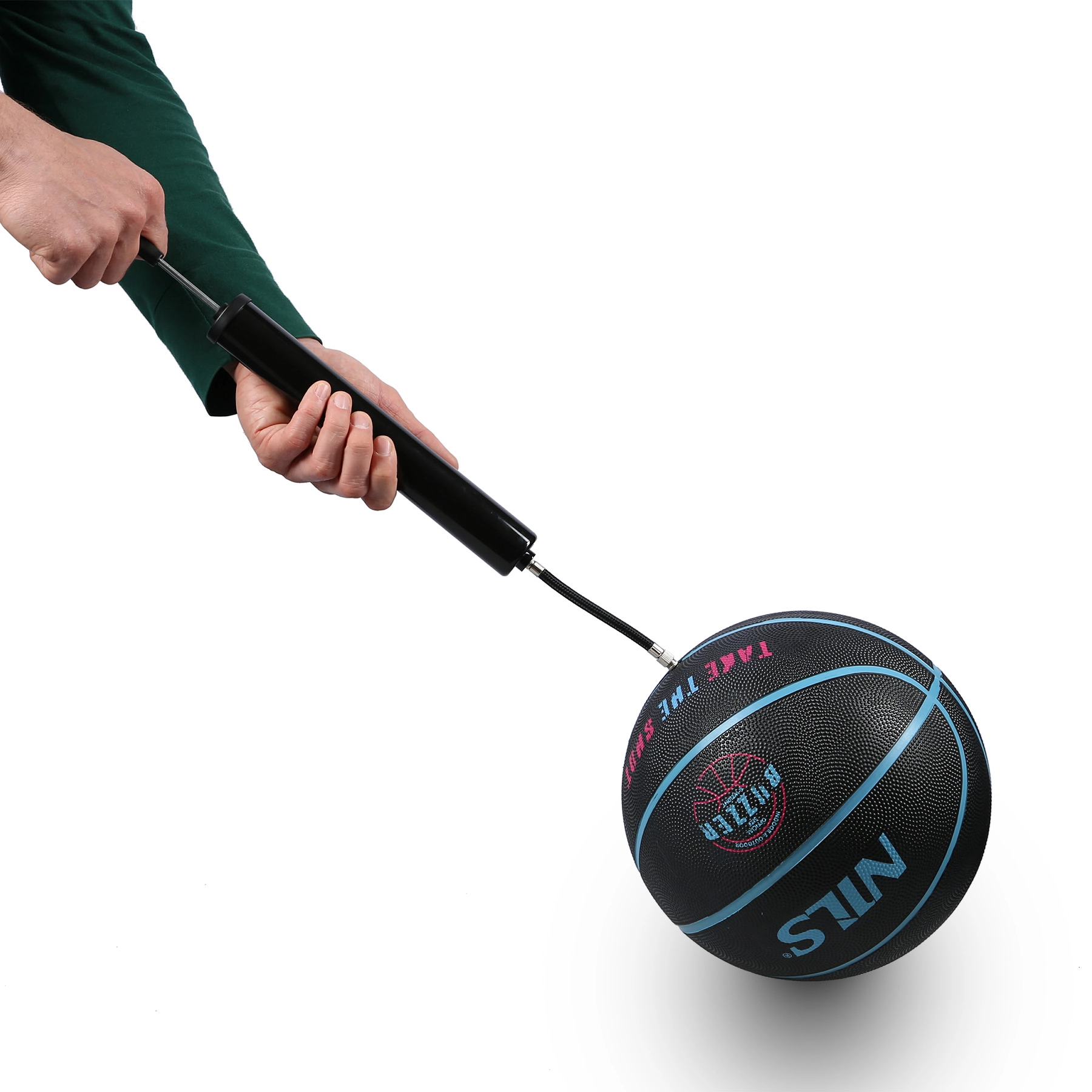Pompa practică NILS este un ajutor de încredere pentru orice echipă sportivă și familie. Construcția ușoară și mânerul ergonomic permit umflare manuală confortabilă a mingilor de baschet, fotbal sau volei, precum și a mingilor de plajă, saltelelor și altor accesorii gonflabile. Furtunul flexibil cu ac protejează valva și facilitează dozarea precisă a presiunii.