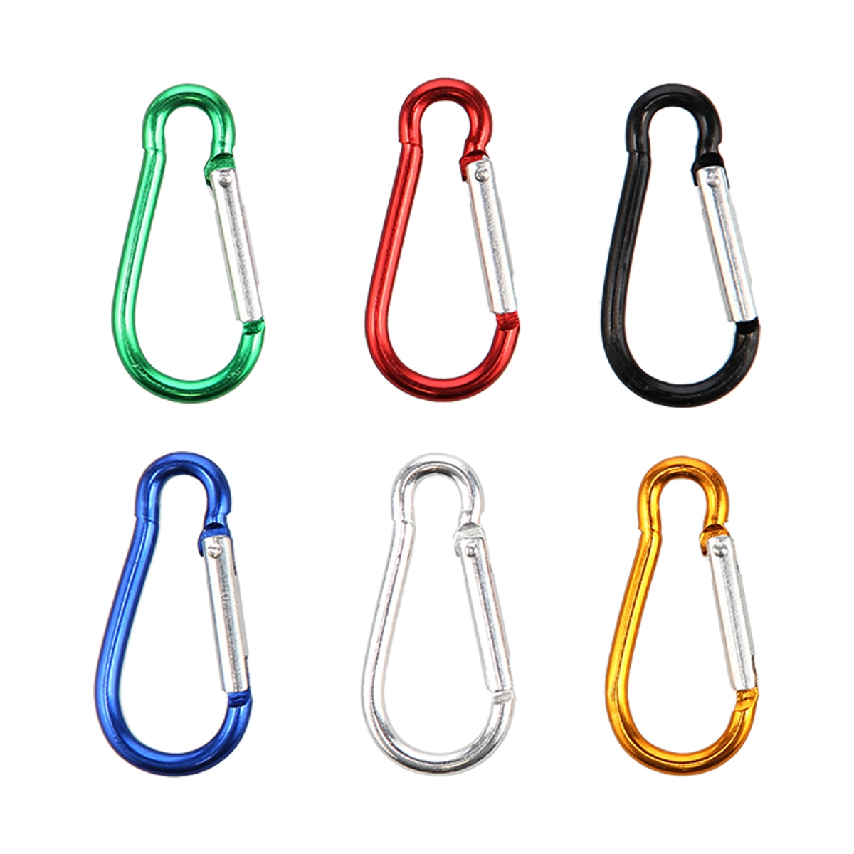 Set practic de 6 carabiniere ușoare din aluminiu anodizat pentru utilizare zilnică în aer liber și în oraș. Datorită finisajului eloxat, solid și rezistent rezistă la coroziune, închiderea rapidă cu arc facilitează atașarea și detașarea, iar dimensiunile compacte sunt ideale pentru chei, rucsac, campare sau organizarea accesoriilor mici. Capacitate de încărcare 5 kg – pentru obiecte ușoare.