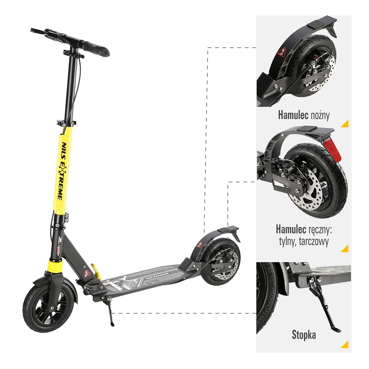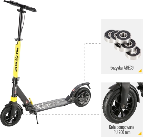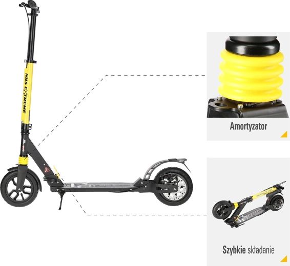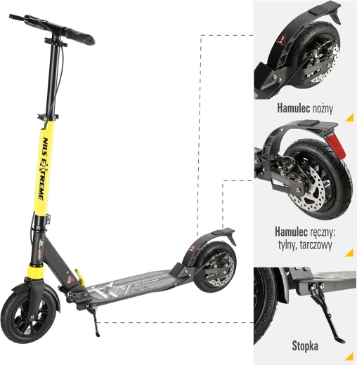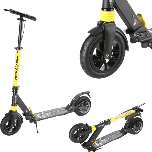 Trotineta NILS Extreme HM208T este proiectată pentru naveta zilnică și plimbările recreative. Datorită suspensiei pe ambele roți și anvelopelor cu aer, absoarbe excelent denivelările, astfel încât mersul pe asfalt sau pe pavaj este mai plăcut și mai silențios. Frâna mecanică pe disc în combinație cu aripa spate robustă cu frână prin apăsare asigură o oprire sigură și lină.