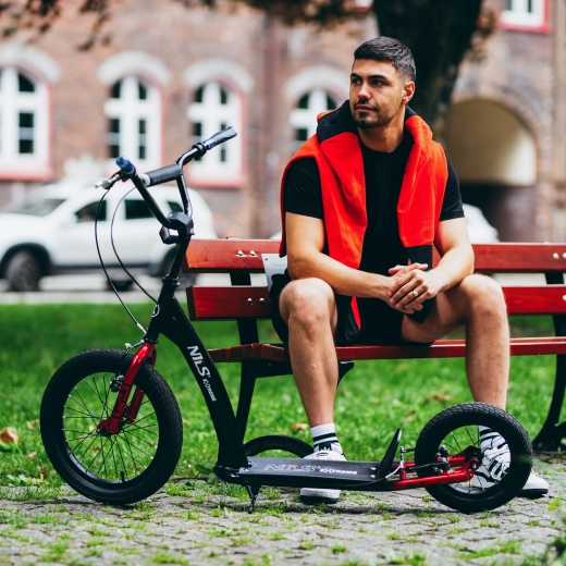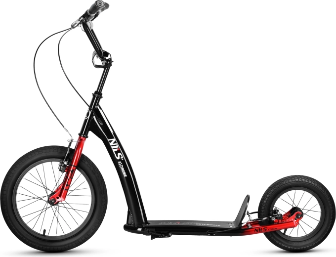 Trotineta NILS Extreme cu roți 16/12 este concepută pentru riderii activi din mediul urban care vor să combine confortul, siguranța și stilul. Roțile pneumatice mari acționează ca amortizoare naturale, depășesc lin pavelele, denivelările și aleile din parc și asigură aderență excelentă.