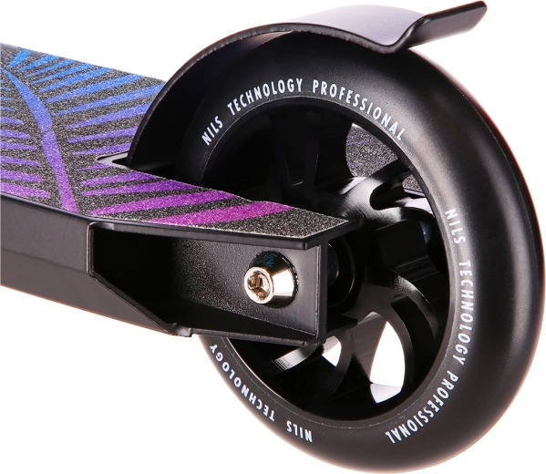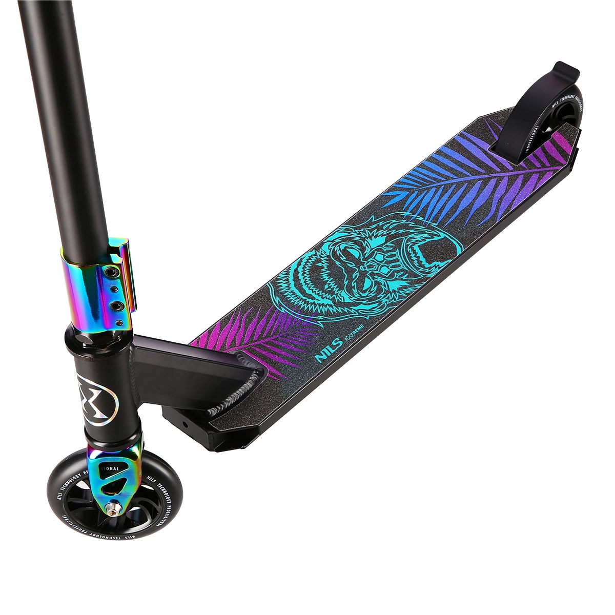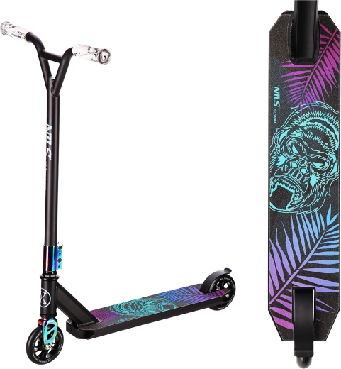 NILS Extreme Neo este o trotinetă freestyle fiabilă pentru copii, adolescenți și adulți, construită pe un cadru solid din aluminiu cu ghidon din oțel. Datorită deck-ului cu 3 camere și clemei cu patru șuruburi, face față trick-urilor solicitante și deplasărilor zilnice pe asfalt și pe alei consolidate.