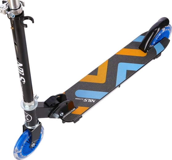 Trotineta NILS Extreme HD025 îmbină designul modern, greutatea redusă și siguranța. Construcția din oțel și aluminiu este solidă și în același timp ușoară, astfel încât trotineta se transportă și se depozitează cu ușurință. Roțile cu LED și lateralele iluminate ale platformei sporesc vizibilitatea la apus și adaugă un efect atractiv, îndrăgit de copii.