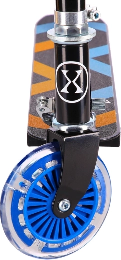 LED-urile colorate din roțile de 125 mm se aprind automat în timpul mersului, iar lateralele platformei completează iluminarea cu LED-uri (alimentare 3× AAA, neincluse). Copiii vor fi mai vizibili chiar și pe înserat.