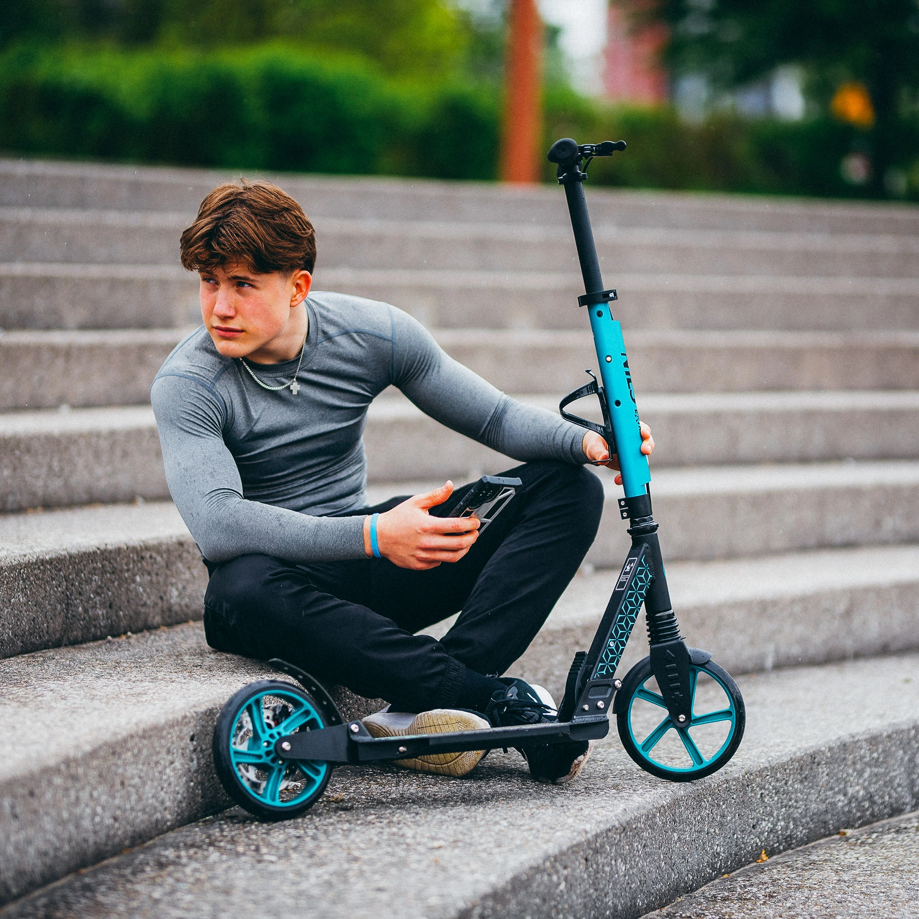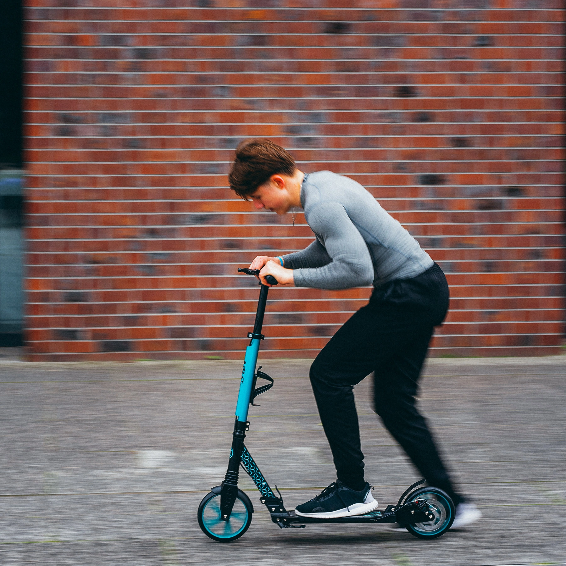 Trotinetă ușoară și rezistentă pentru deplasări urbane și navetă, ideală pentru copii și adolescenți. Oferă structură din aluminiu, roți mari de 200 mm cu rulmenți ABEC 7, ghidon reglabil și frână pe disc spate pentru oprire sigură. Datorită pliei rapide, greutății reduse de 5,6 kg și capacității de încărcare de 100 kg, este o alegere excelentă pentru utilizare zilnică, confortabilă și sigură.