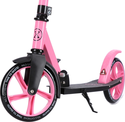 Cauți o trotinetă de oraș fiabilă și confortabilă? NILS EXTREME HM2009 în culoarea roz combină o construcție ușoară din oțel și aluminiu cu un mecanism de pliere, astfel încât o poți lua ușor în transportul public sau o poți depozita în portbagaj. Datorită ghidonului reglabil și mânerelor din cauciuc, se pot bucura de ea atât riderii mai mici, cât și adulții.