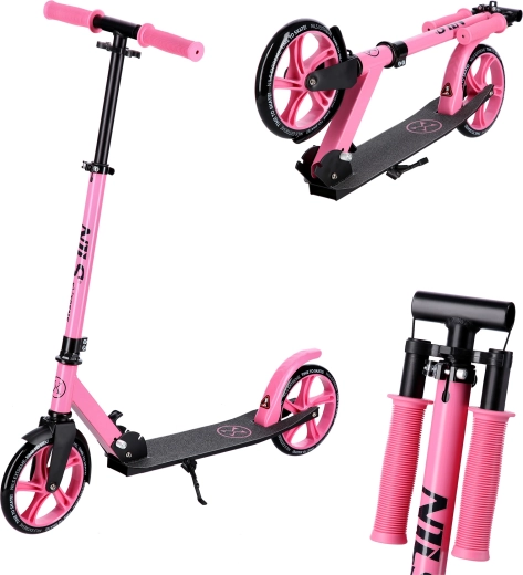 Trotinetă urbană stilată pentru copii și adulți, cu structură ușoară pliabilă, roți mari de 200 mm și rulmenți ABEC 7 pentru o plimbare rapidă, lină și sigură. Oferă ghidon reglabil (75–95 cm), frână de picior pe aripa spate și cric rabatabil pentru parcare ușoară.