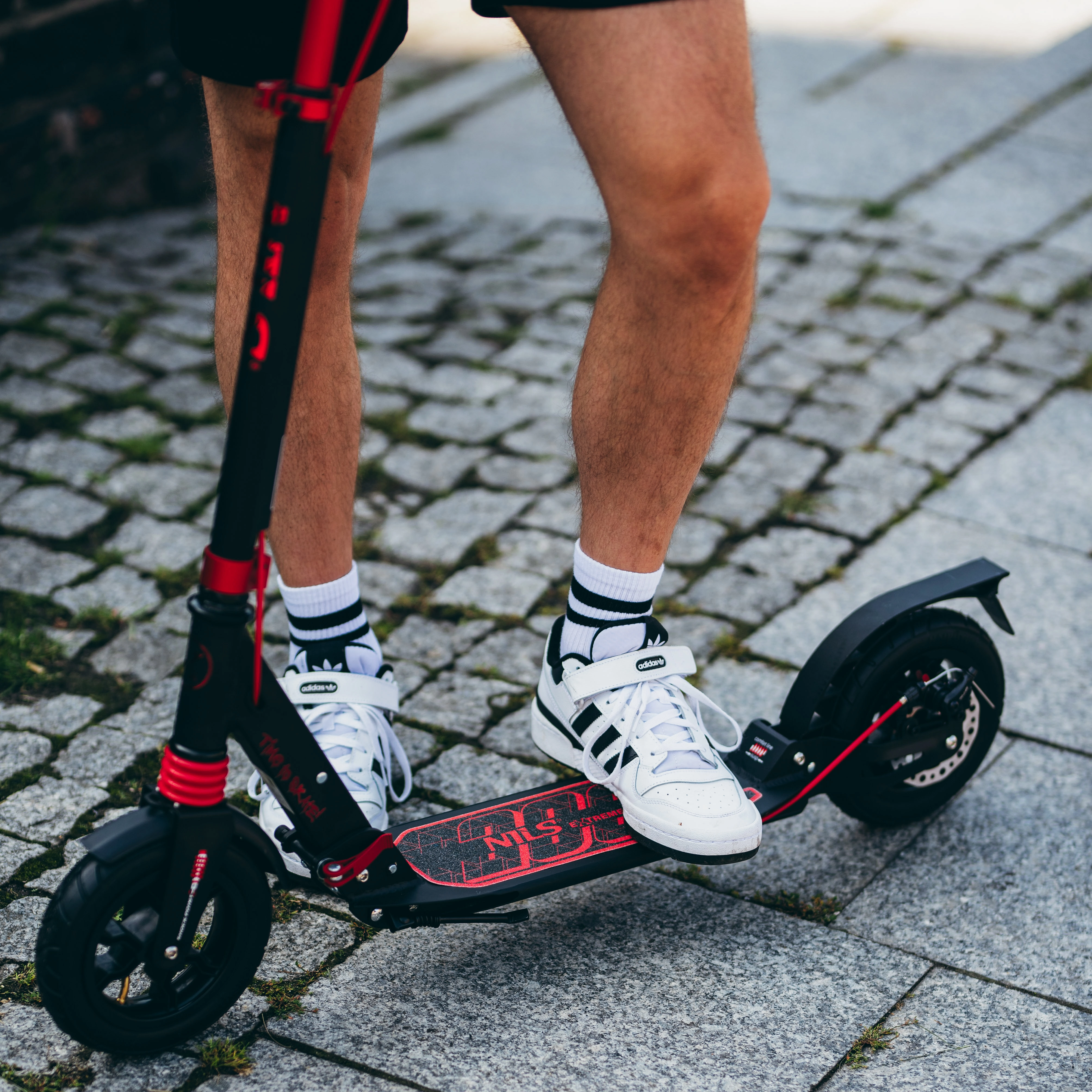 Trotineta NILS Extreme HM209T este alegerea ideală pentru utilizatorii urbani care caută un mix de confort, siguranță și compactitate. Anvelopele pneumatice cu diametrul de 200 mm, împreună cu suspensia față și spate, atenuează denivelările și asigură o rulare lină. Rulmenții ABEC9 adaugă lejeritate și fluiditate la împingere, în timp ce platforma lată din aluminiu, 61 × 15 cm, cu griptape, oferă siguranță și stabilitate.