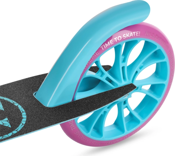 Trotineta NILS Extreme HM1302 este o alegere ideală pentru oraș. Roțile mari cu diametrul de 200 mm, cu butuc din polipropilenă și anvelopă din poliuretan, oferă stabilitate, amortizarea denivelărilor și aderență sigură pe asfalt și pavaj. Rulmenții ABEC-7 reduc frecarea, permițând porniri ușoare și menținerea vitezei fără efort.