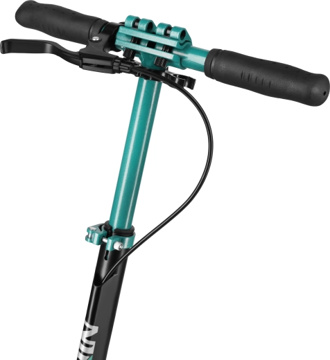 Trotinetă ușoară și rezistentă pentru oraș, cu cadru din aluminiu, roți mari de 200 mm și rulmenți ABEC 9, oferă o deplasare lină și silențioasă. Datorită suspensiei față, ghidonului reglabil pe înălțime și plierii rapide, este ideală pentru copii și adulți. Oprirea în siguranță este asigurată de frâna spate la călcare și frâna pe disc cu manetă pe ghidon.