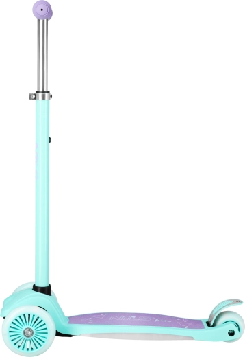 Această trotinetă pentru copii îmbină siguranța, confortul și designul modern. Cele două roți frontale din PU cu LED asigură o rulare lină și vizibilitate mai bună, iar platforma lată antiderapantă cu efect luminos oferă siguranță la împingere și sprijin. Rulmenții ABEC 7 contribuie la o funcționare silențioasă și cursivă.