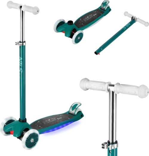 Datorită celor două roți frontale și sistemului intuitiv de direcție prin înclinare, această trotinetă este excelentă pentru copii începători și avansați. Platforma lată antiderapantă cu efect LED sporește vizibilitatea și atractivitatea, în timp ce ghidonul T-bar reglabil (78/84/90 cm) permite trotinetei să crească odată cu copilul.