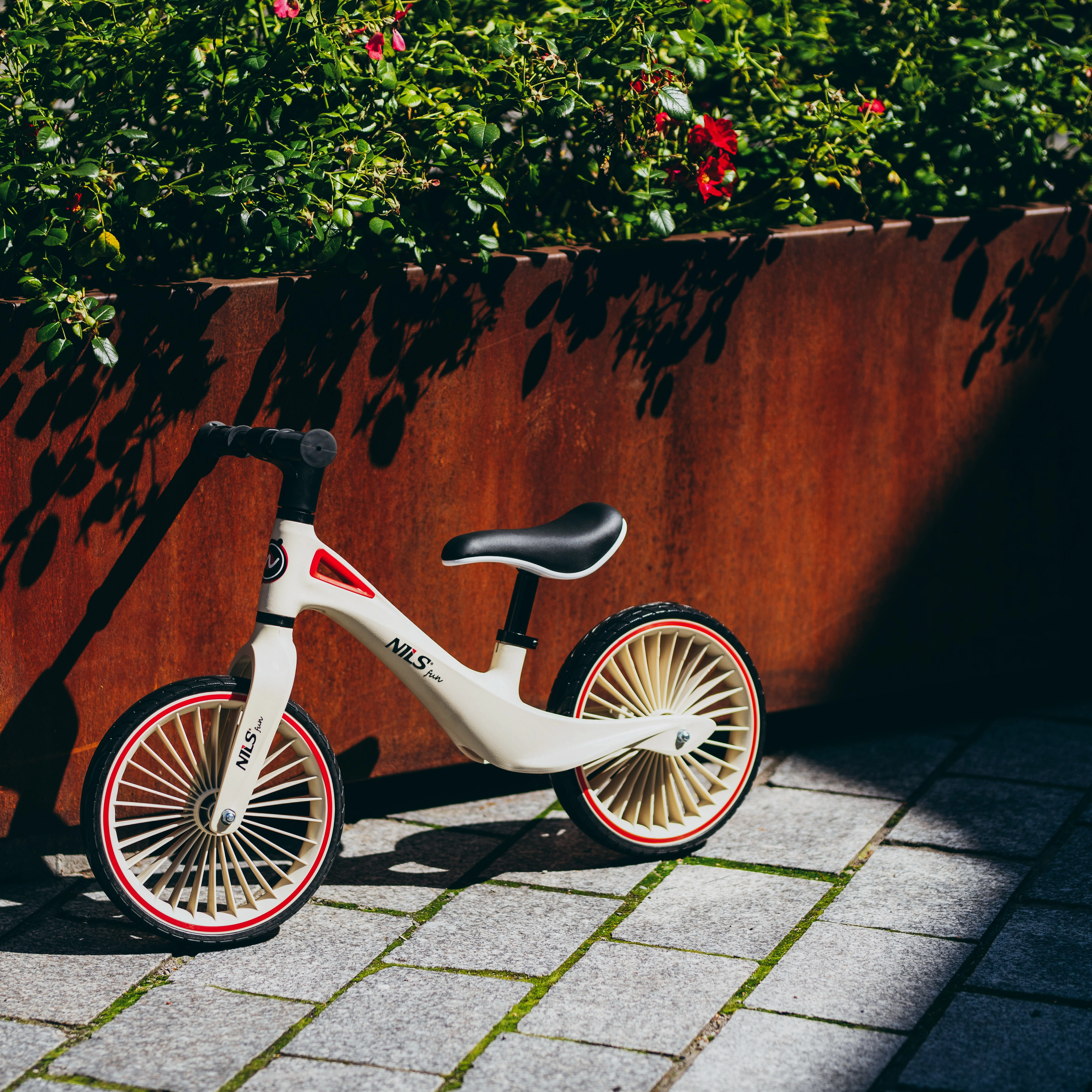 Căutați prima bicicletă fără pedale ideală? Bicicleta de echilibru pentru copii NILS Fun, cu o construcție ușoară și robustă din plastic tehnic, îi ajută pe cei mici să își dezvolte echilibrul, coordonarea și încrederea la mers. Datorită greutății reduse de 3 kg, se manevrează și se transportă ușor, în timp ce roțile PU de 12" atenuează denivelările și sunt complet fără întreținere – fără peticirea camerelor sau umflare.