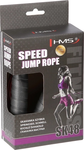 HMS SK48 este o sfoară de viteză proiectată pentru arderea eficientă a caloriilor, îmbunătățirea condiției fizice și a coordonării. Datorită cablului din oțel cu strat protector și rulmenților cu bile din capetele rotative, obții sărituri line și foarte rapide fără răsuciri sau blocaje.