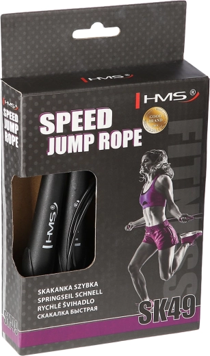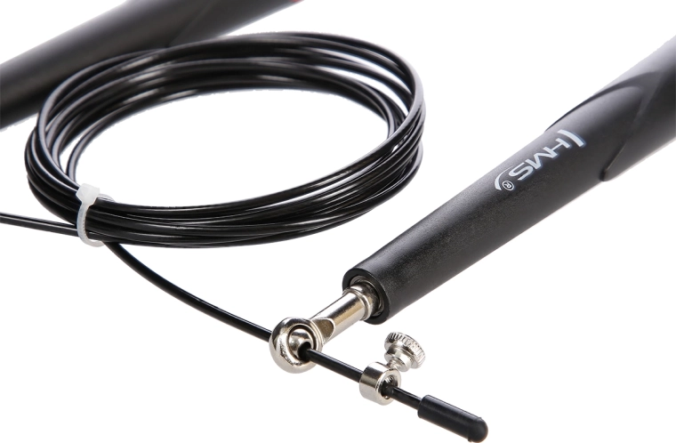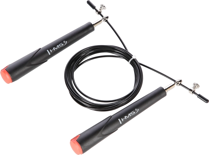 HMS SK49 este o coardă de viteză concepută pentru sărituri fluide și foarte rapide. Datorită capetelor cu rulmenți, cablul nu se încurcă și rotește cu frecare minimă, lucru pe care îl vei aprecia în intervale, double unders și HIIT. Cablu de oțel cu reglare lină a lungimii prin șuruburi, pe care îl adaptezi ușor înălțimii și stilului tău de sărit.