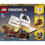 - LEGO Creator 3 în 1 Corabie de pirați (31109) – trei modele de construit: corabie clasică de pirați, cârciuma piraților și Insula Craniilor.