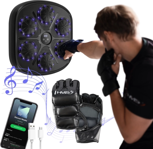 HMS TB03 duce antrenamentul de box de acasă la nivelul următor. Iluminarea LED dinamică evidențiază clar zonele de lovire și te provoacă la reacții rapide și precise, îmbunătățind coordonarea mână‑ochi, reflexele și condiția cardio. Displayul integrat cu numărarea loviturilor precise oferă un control simplu și clar al progresului, fără setări inutile.
