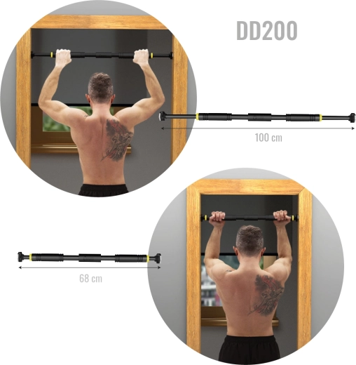 Datorită intervalului reglabil 66,5–100 cm, se potrivește perfect în majoritatea tocurilor de uși. Capetele din silicon previn alunecarea și protejează tocul, în timp ce vopsirea în mai multe straturi (grund, strat anticoroziv și vopsea pulbere) asigură o durată lungă de viață. Ideală pentru tracțiuni, ridicări, mențineri și ridicări de picioare, pentru o întărire complexă a părții superioare a corpului și a zonei centrale.