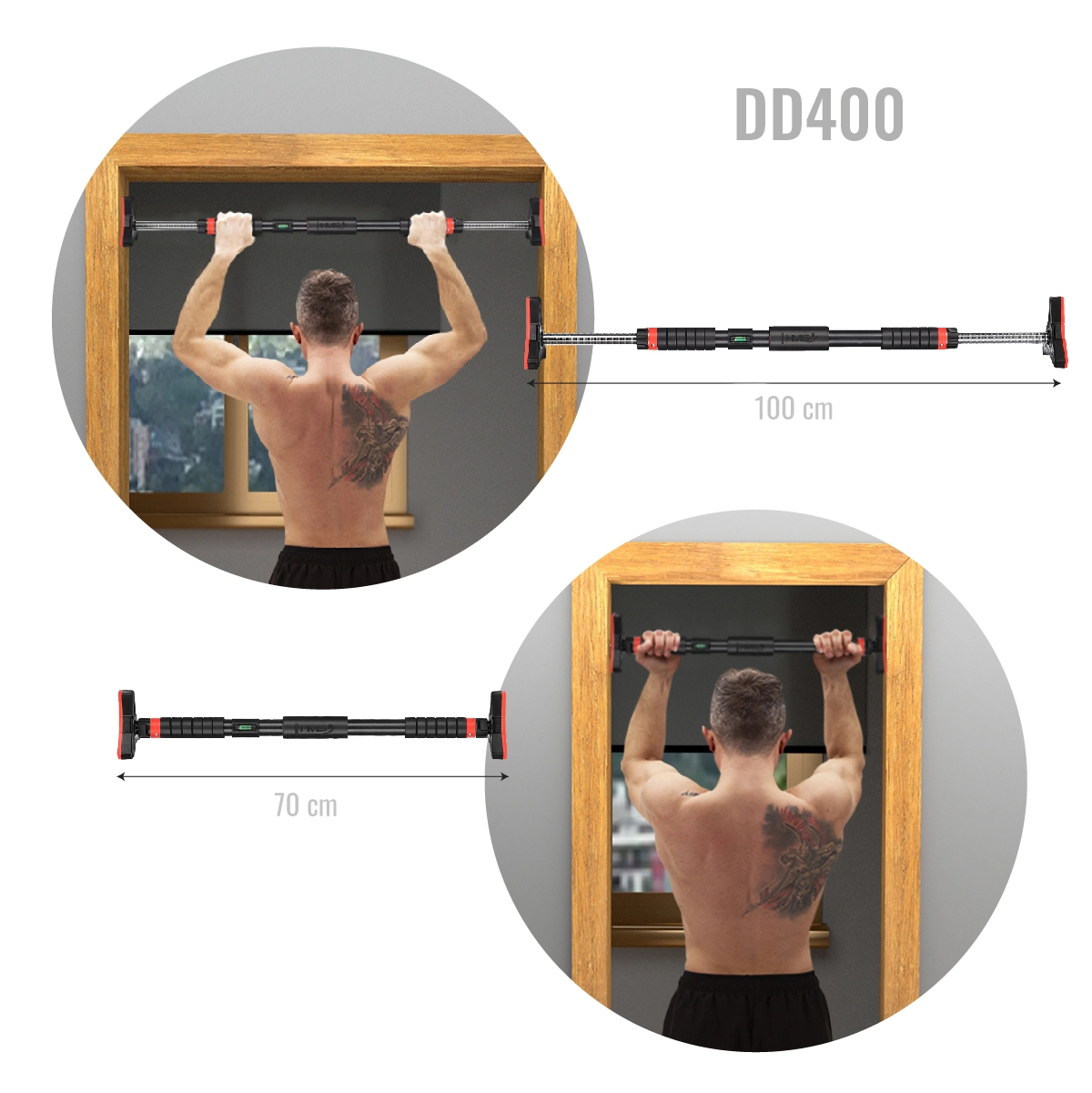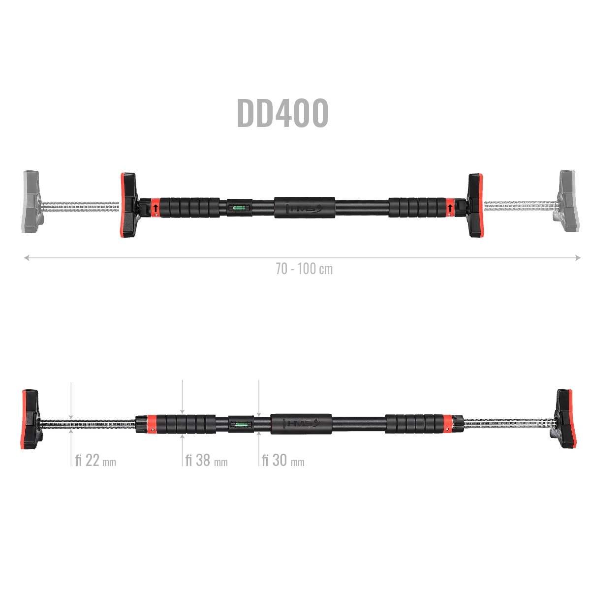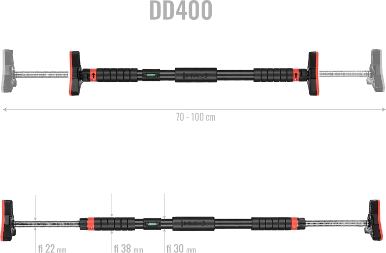 HMS DD400 este o bară de tracțiuni fiabilă pentru ușă, ideală pentru întărirea eficientă a spatelui, umerilor, abdomenului și pieptului. Corpul principal din oțel, cu tratament anticoroziv și vopsea pulbere, asigură o durabilitate ridicată, în timp ce mânerele moi din spumă EVA absorb excelent transpirația și oferă o prindere sigură. Datorită nivelei integrate, aliniezi bara cu ușurință pentru siguranță maximă.